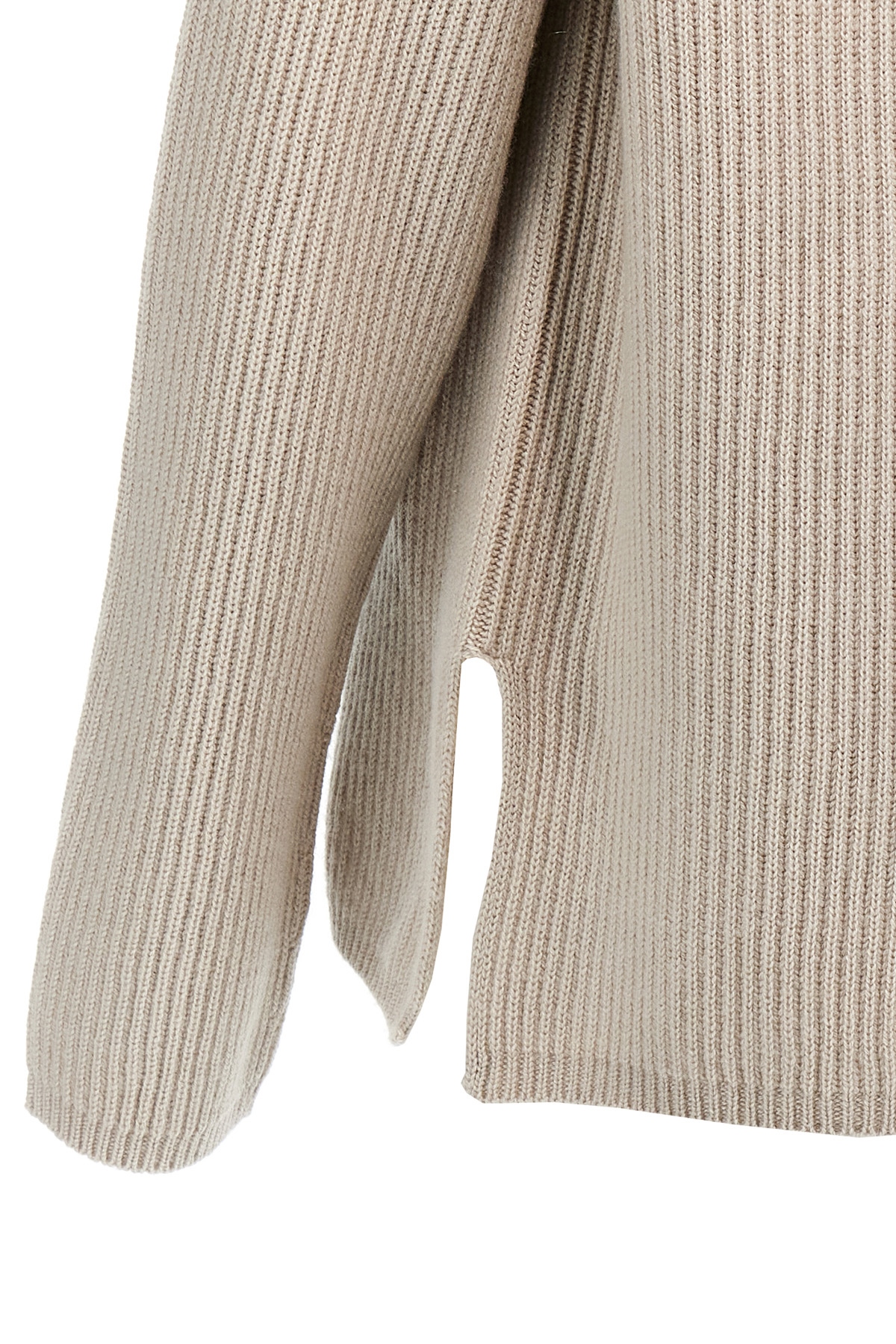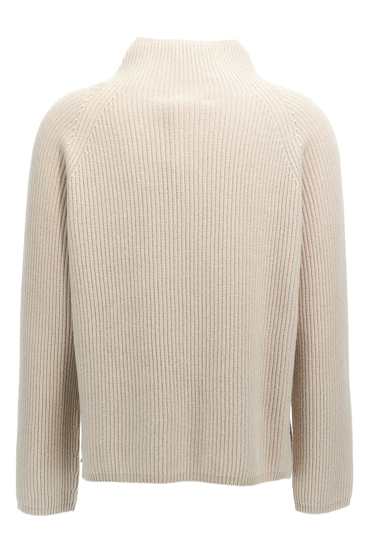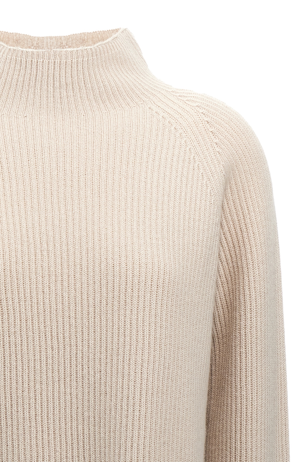 'Elica' English rib wool and cashmere sweater with high neck, long sleeves, side splits.