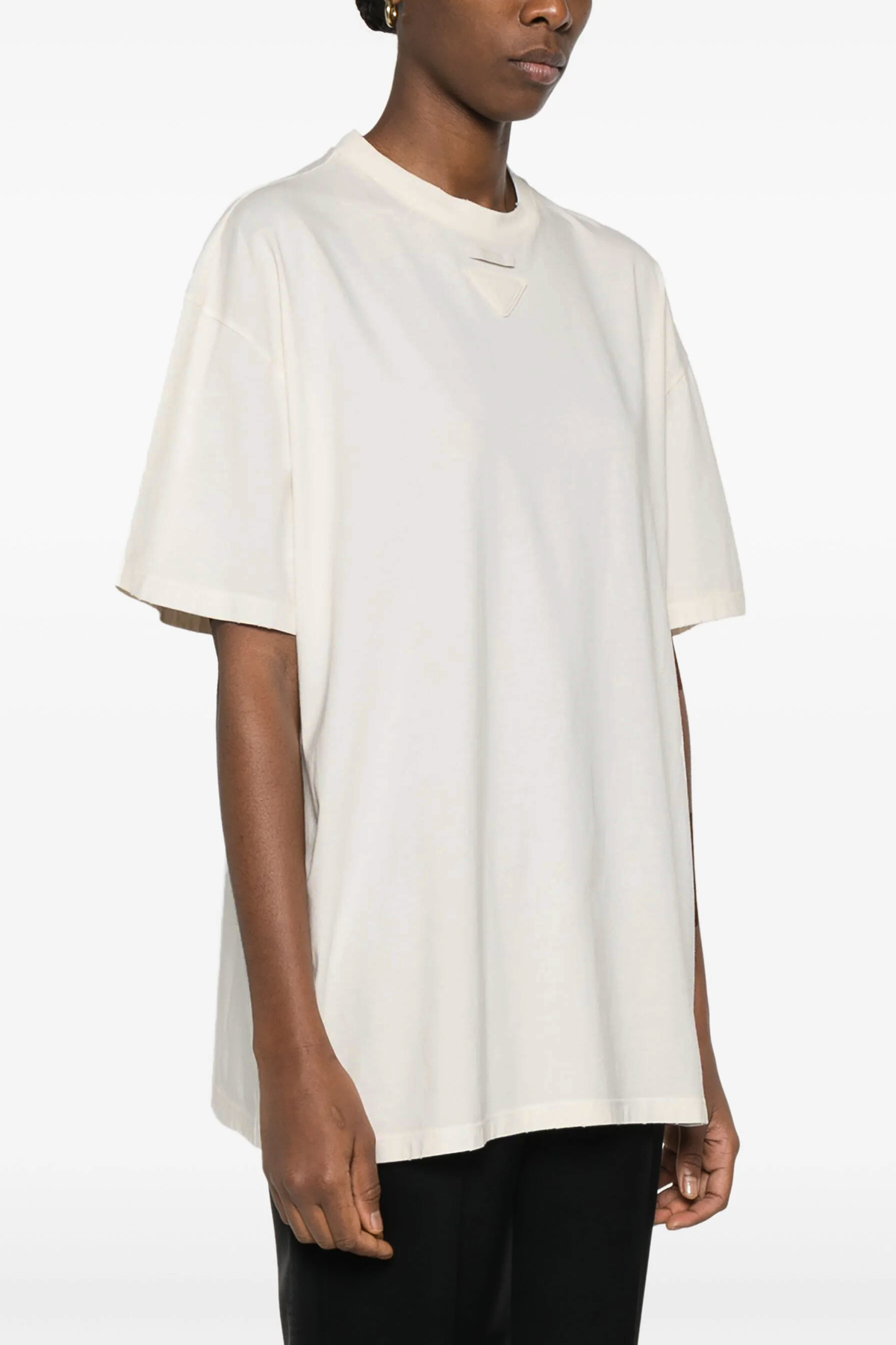 Cotton T-shirt with used effect details, front logo, crew neck, short sleeves.
