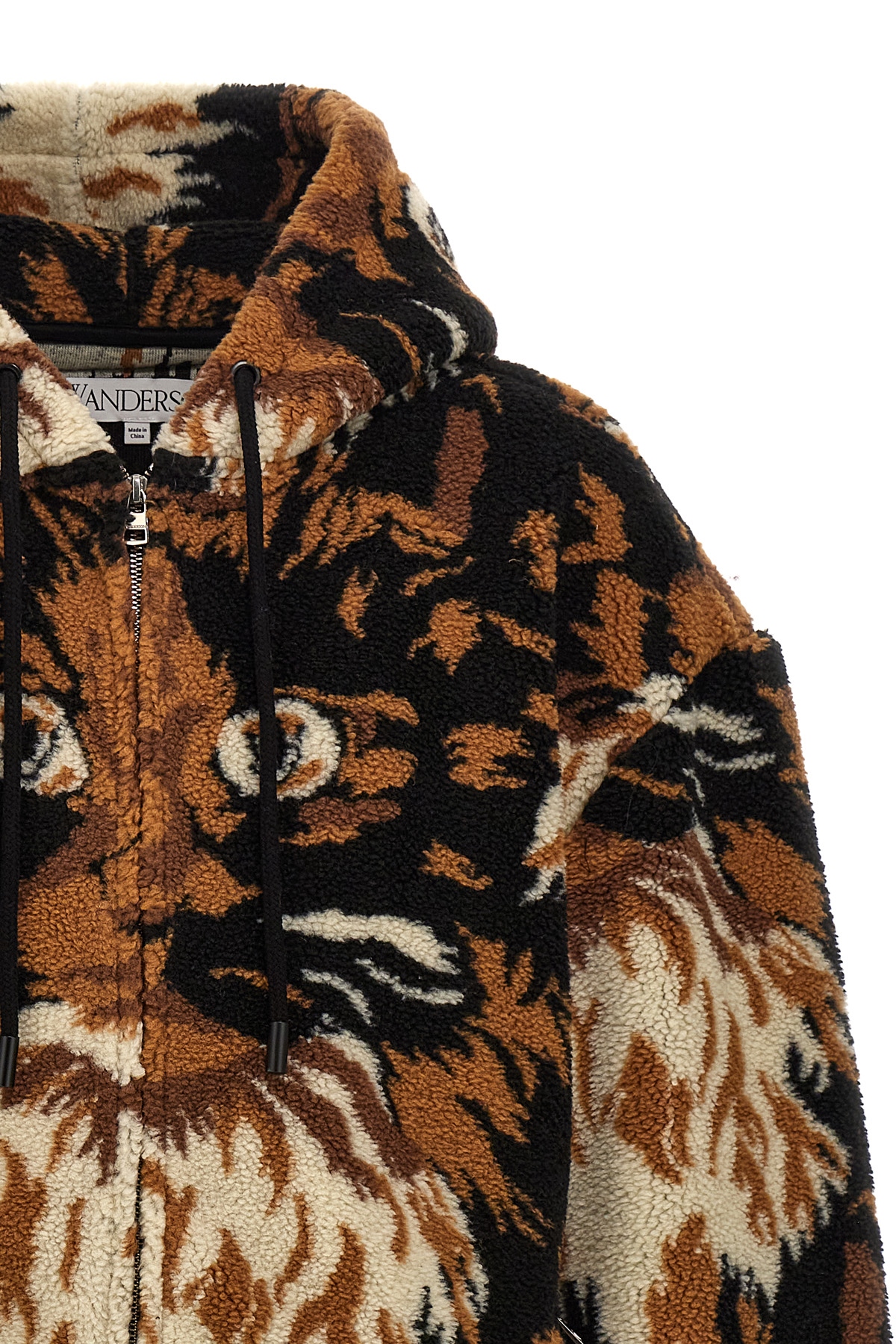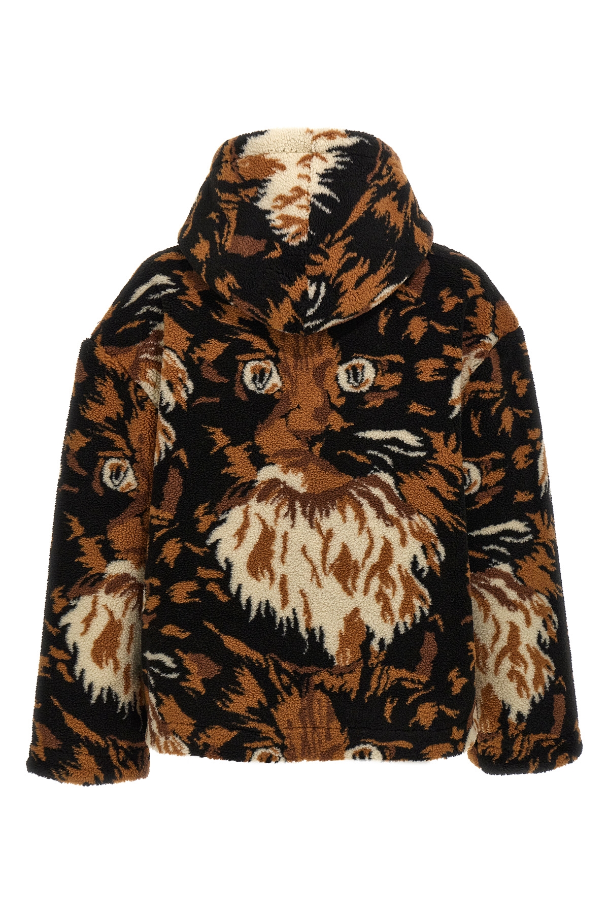 Fleece hooded jacket with all-over print, zip closure, pockets, long sleeves, adjustable drawstring at the hem.