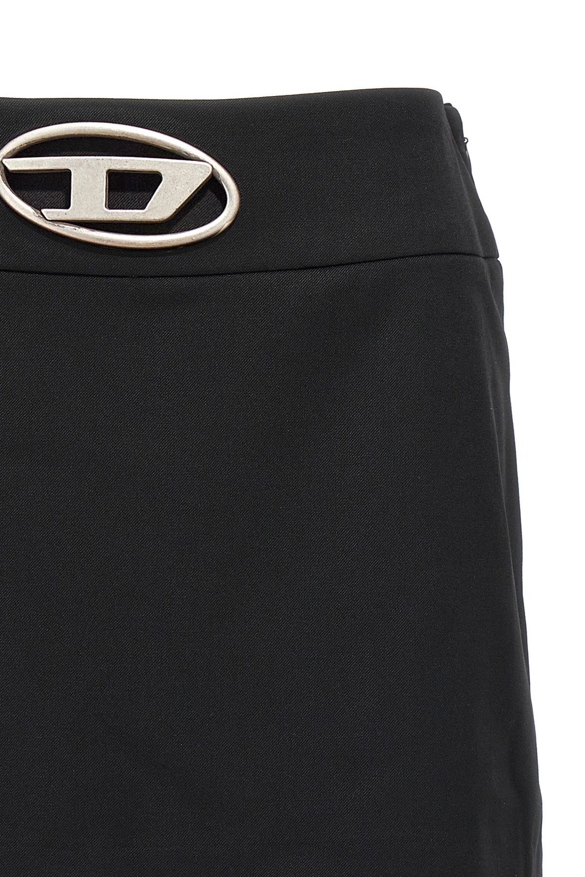 'O-Dixy' wool blend skirt with front cut-out metal logo.
