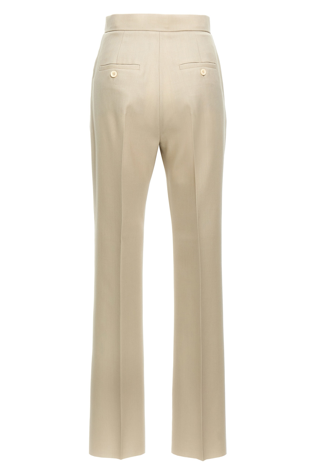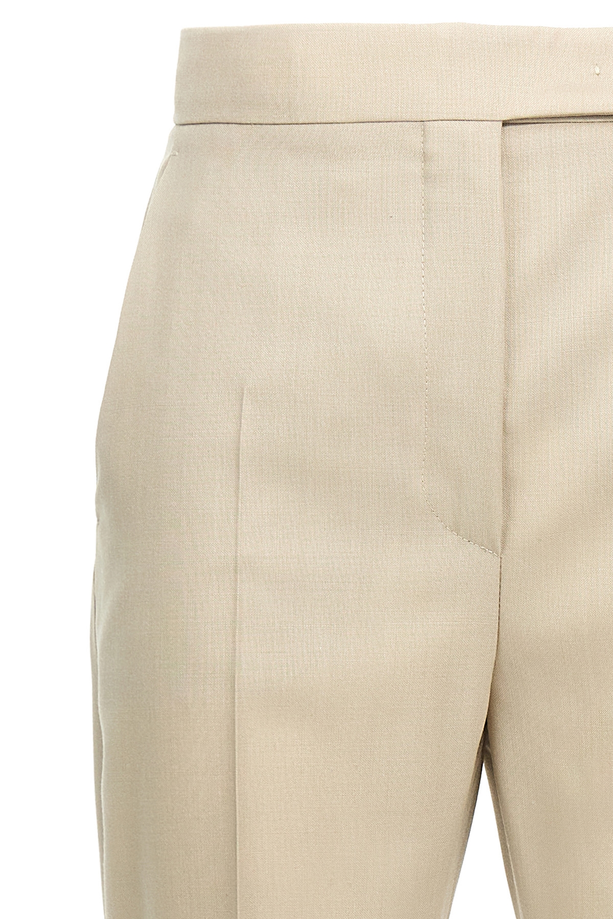 'Turbigo' pants in silk and mohair wool blend, straight leg, ironed pleat, hook and button zip closure, pockets.