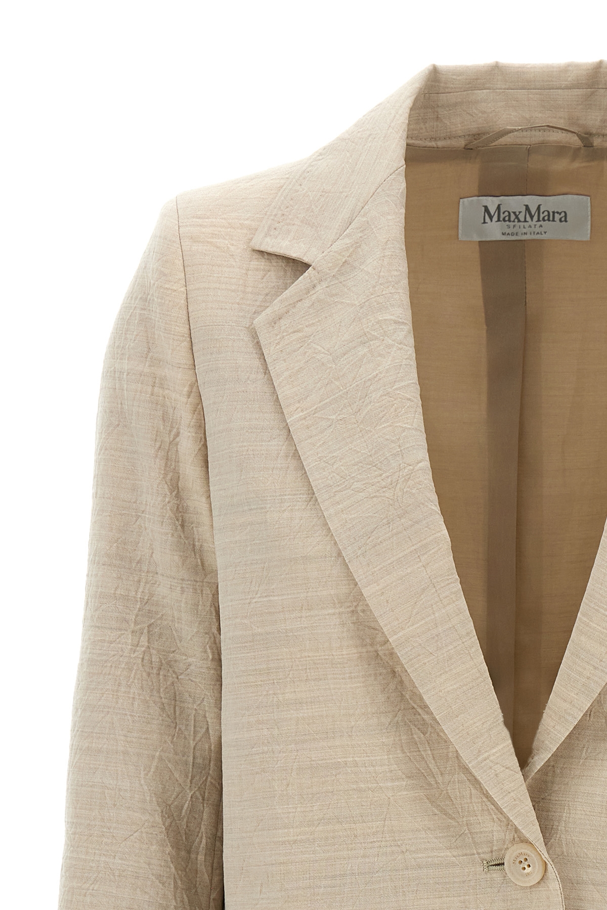 'Acacia1234' single-breasted blazer in wool canvas with a wrinkled-effect texture with button closure, mirror lapels, pockets, long sleeves with slits on the sleeve bottom, and back vents.