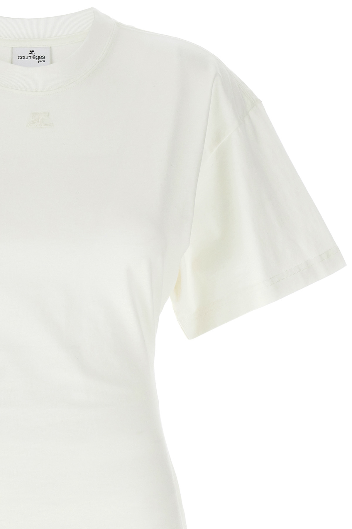 'Fitted' cotton T-shirt with embroidery and front logo patch, crew neck, flared short sleeves, tight waist.