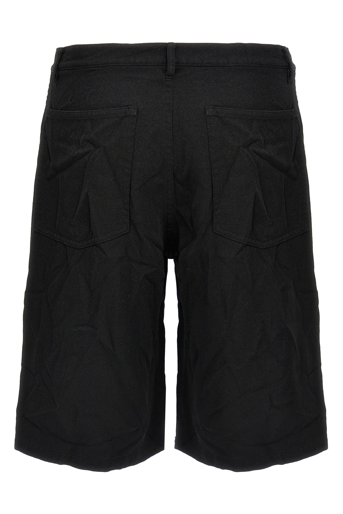 Crumpled fabric bermuda shorts, zip and button closure, pockets, wide leg.