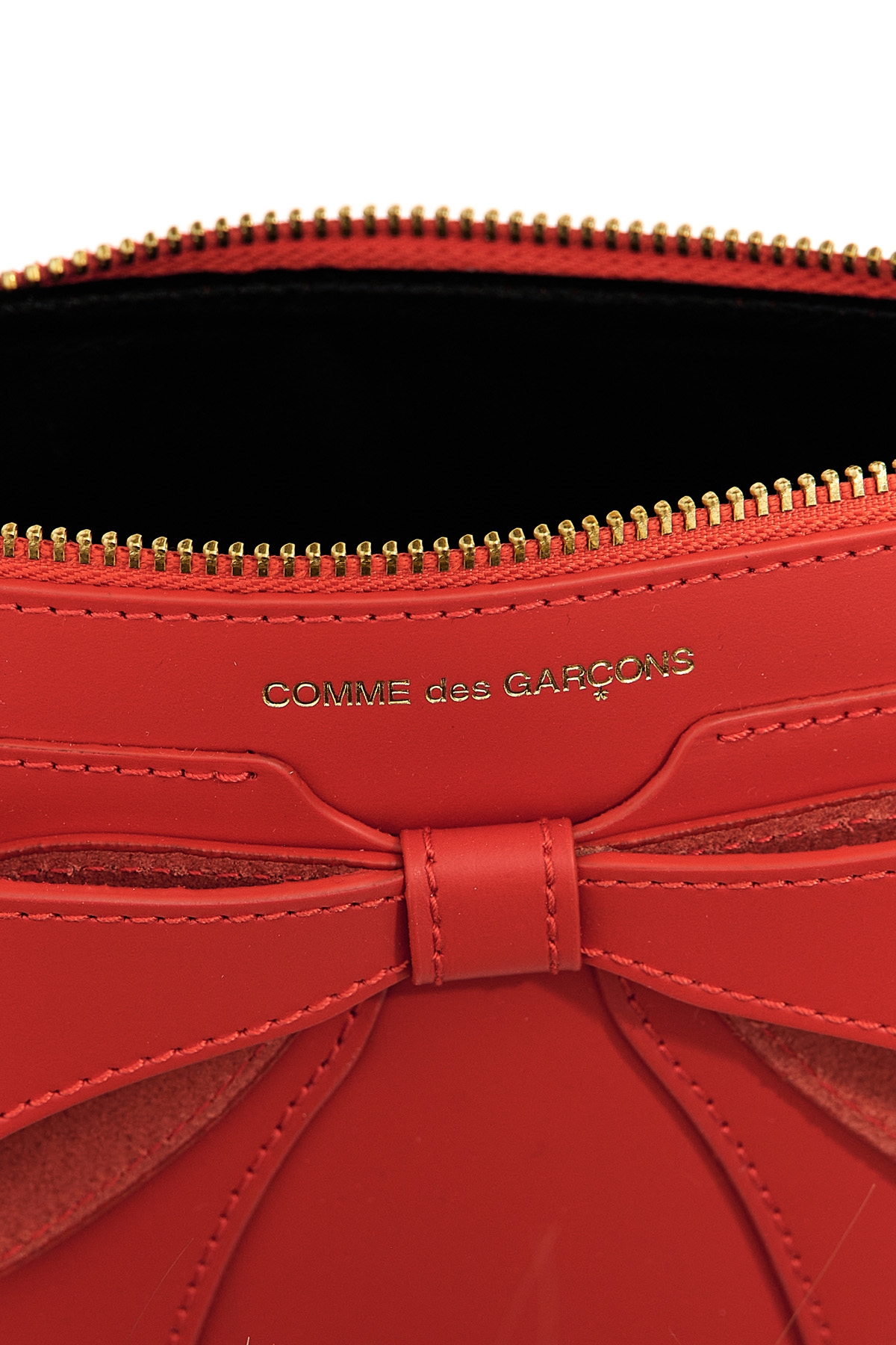 Big Bow' leather wallet with bow detail, front embossed logo, and zip closure.