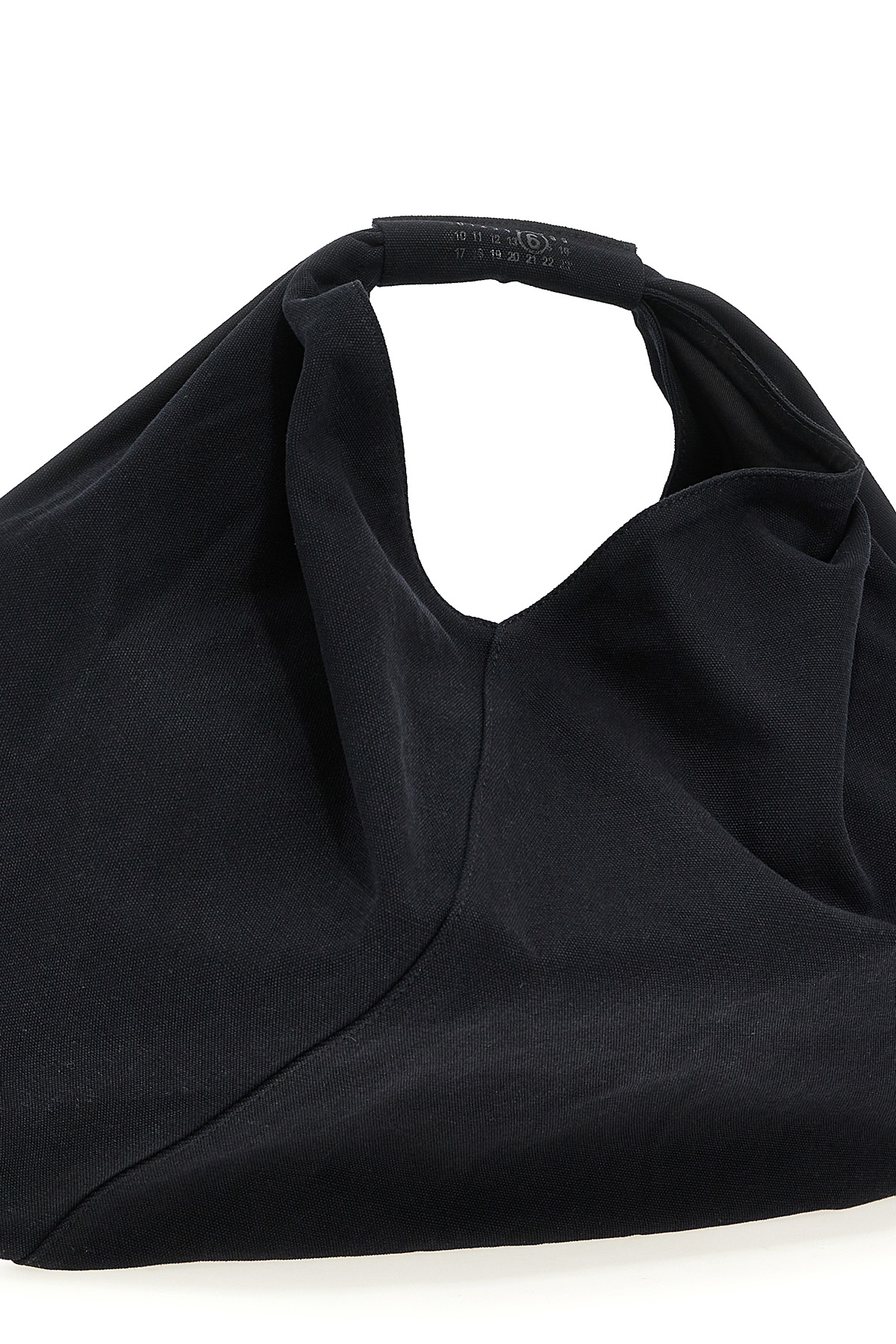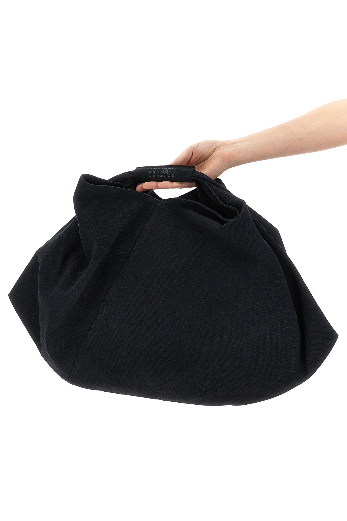 'Japanese' canvas shopping bag with handle with tonal 'Numeric signature MM6' print, 'White stitch line' on the back, snap button closure.