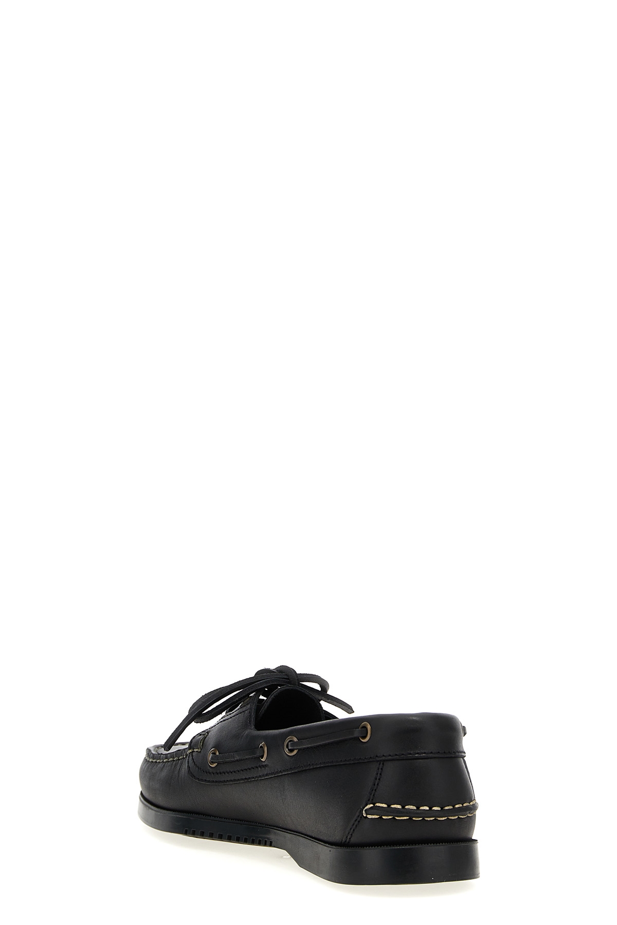 'Barth' leather boat shoe with laces and rubber sole. Paraboot products undergo treatments that preserve the authenticity and freshness of the leather, patina may form when not in use, just remove it with a damp cloth.
