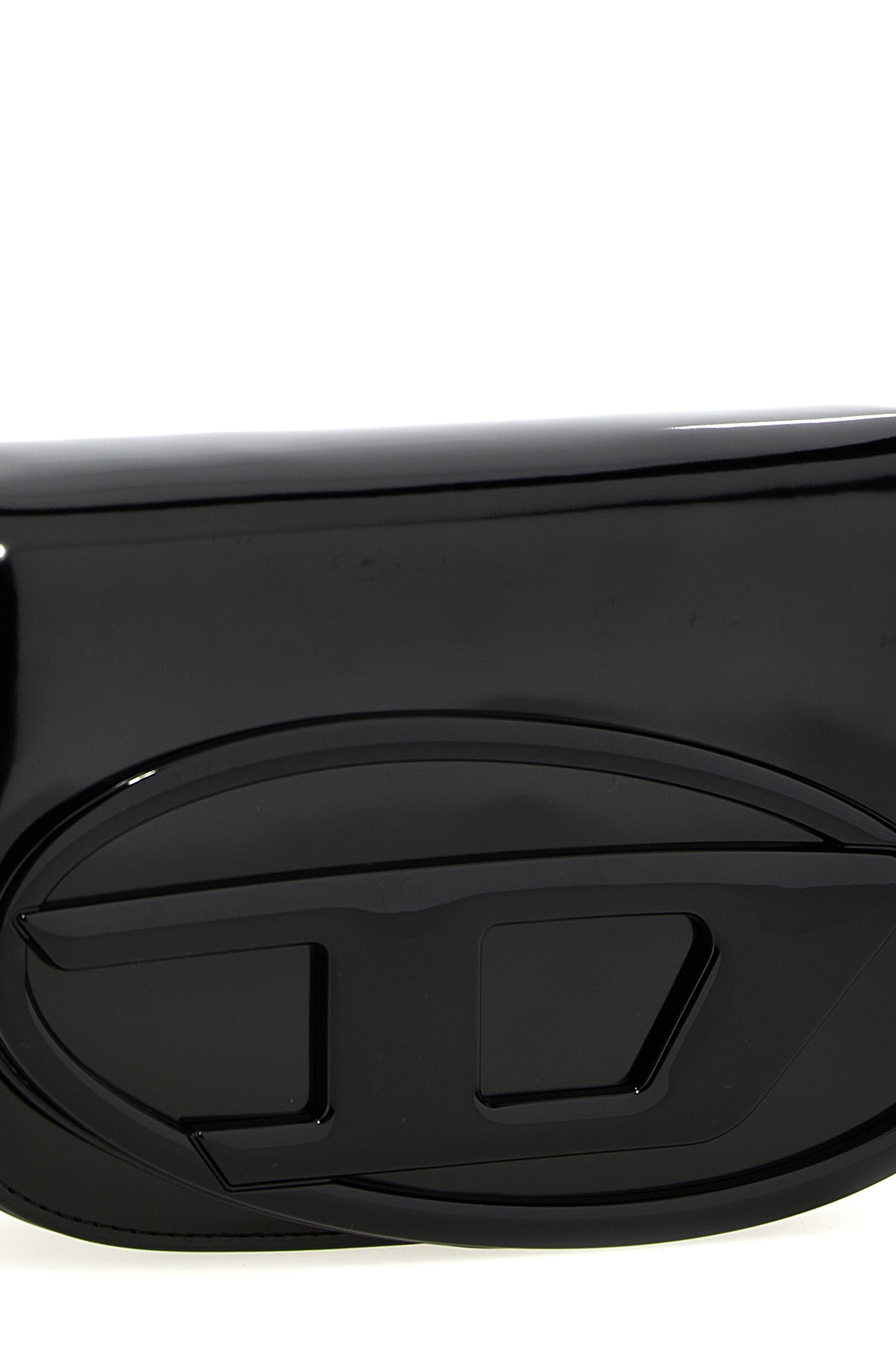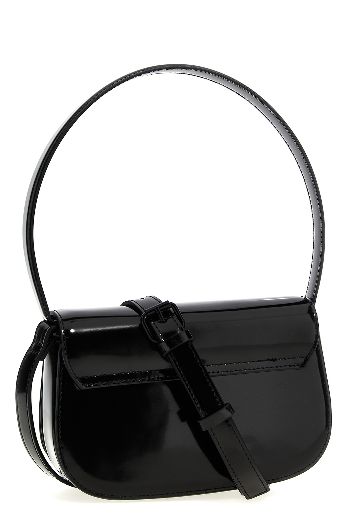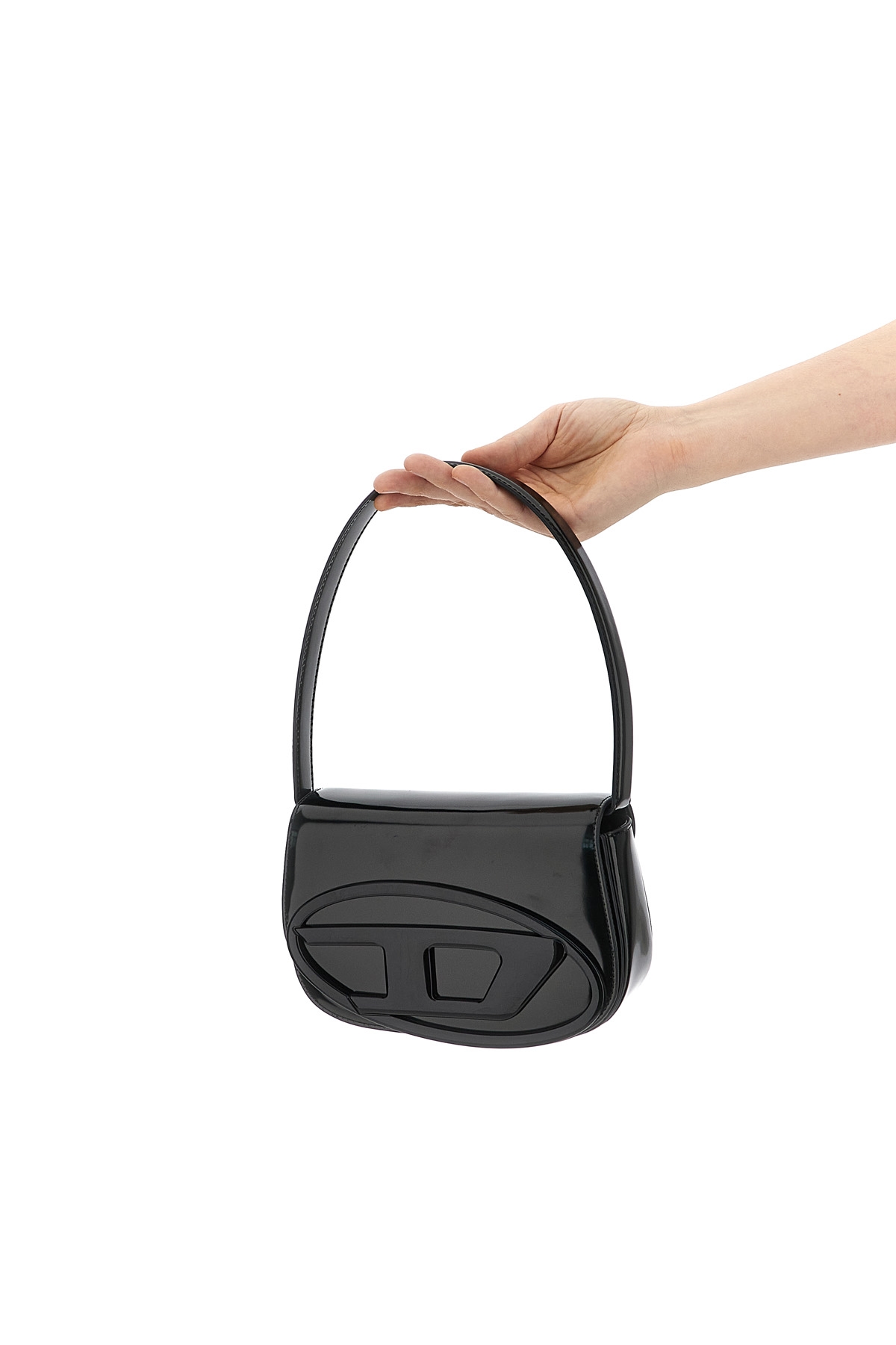 '1DR' shoulder bag in polished mirrored leather, magnetic flap closure with maxi tone-on-tone metallic Oval D logo on the front, adjustable and removable shoulder strap.