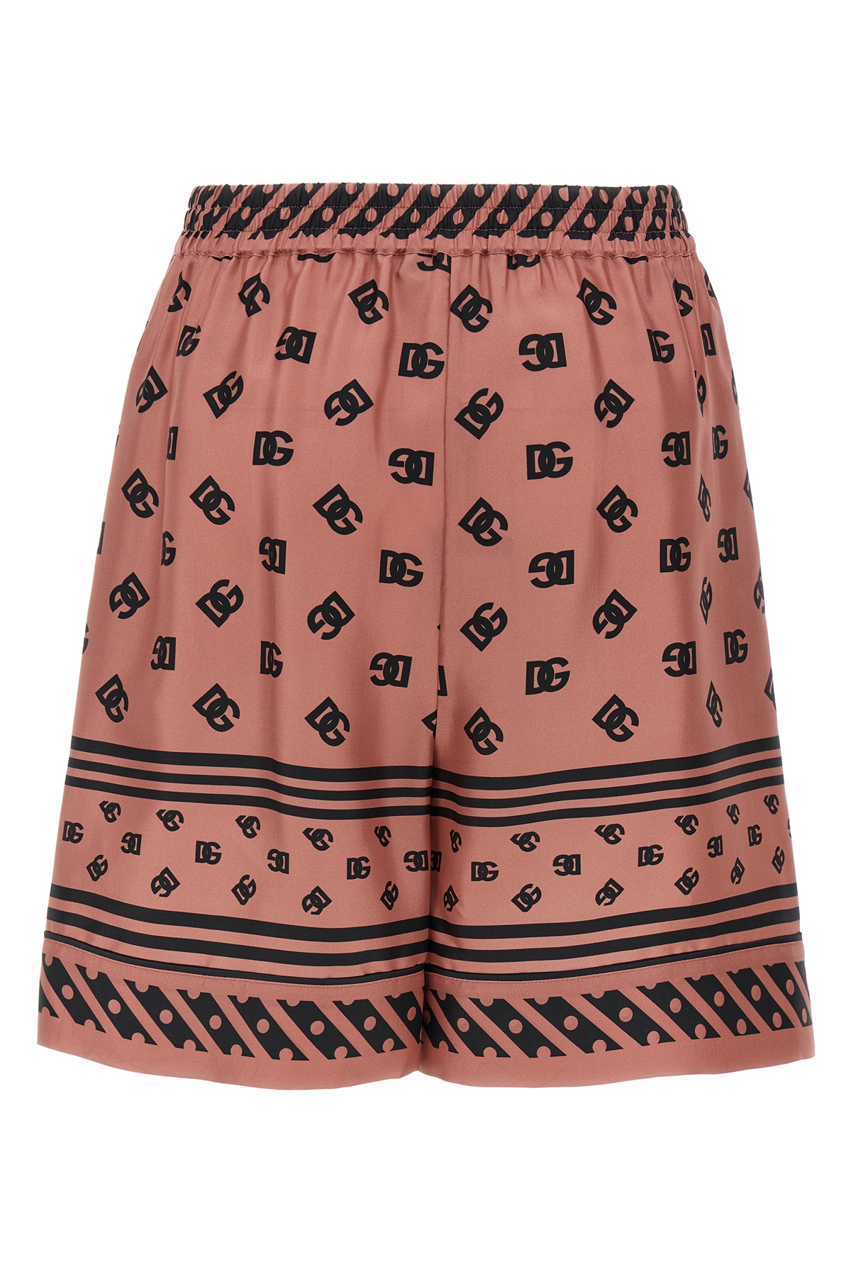 All over DG logo jacquard silk satin bermuda shorts with contrast piping, pajama model, pockets, trompe l'oeil flap and elastic waistband.