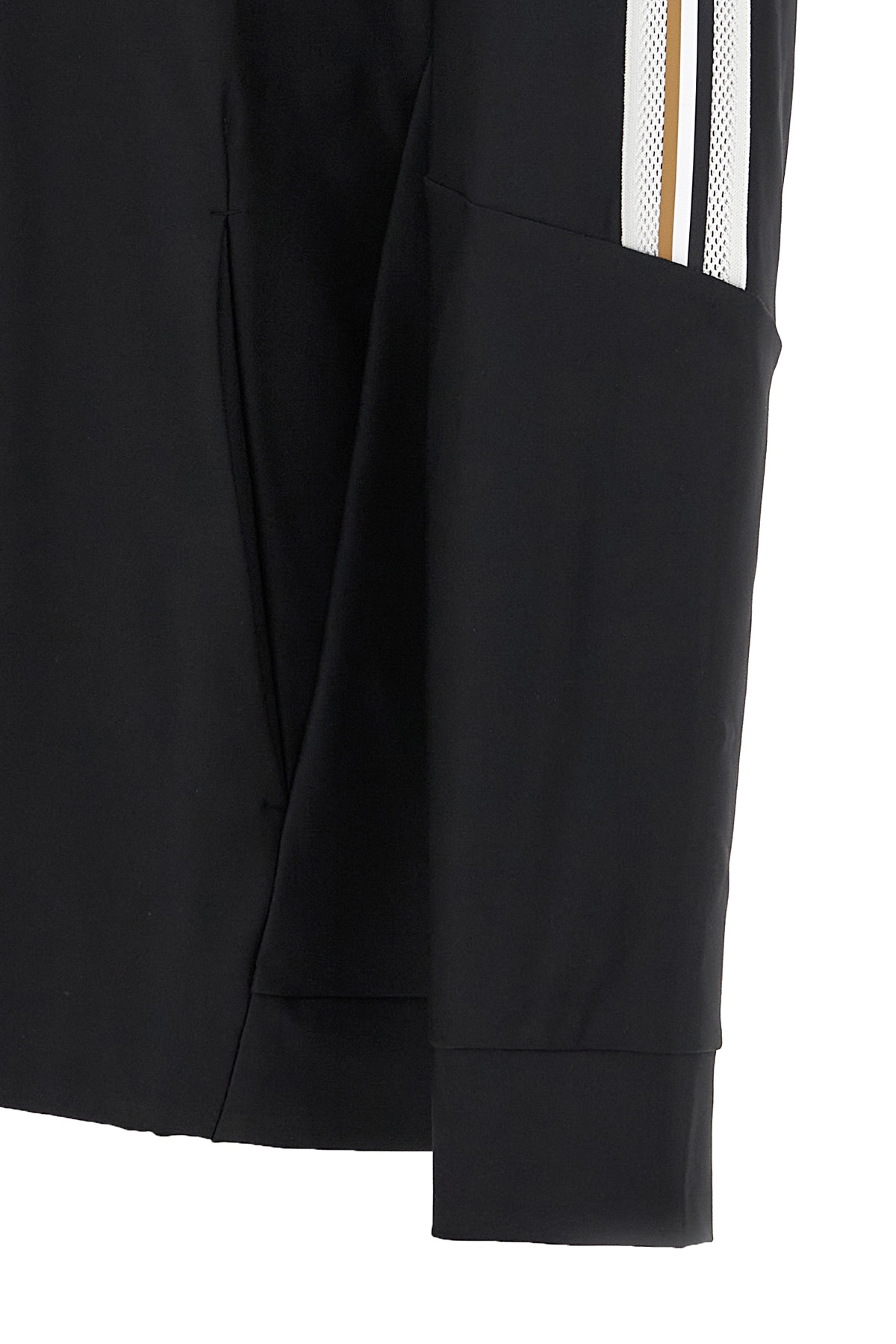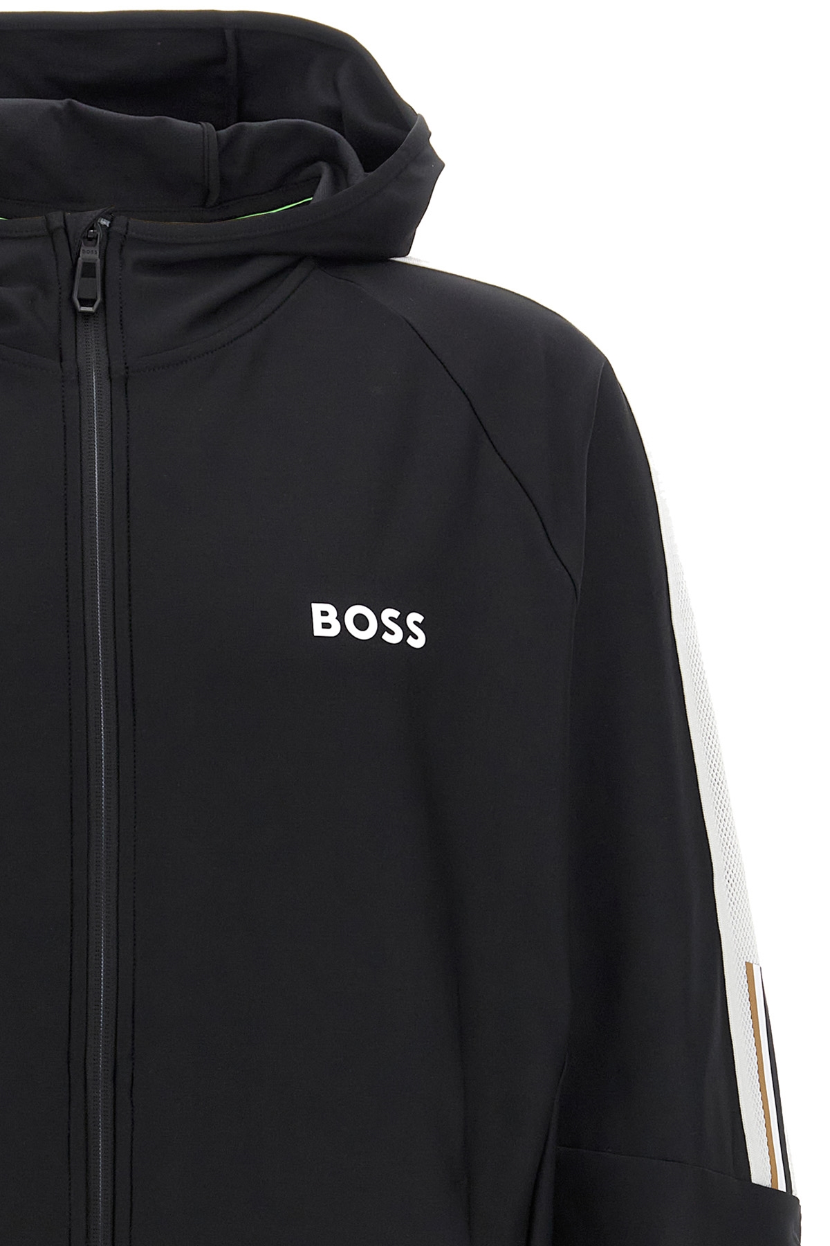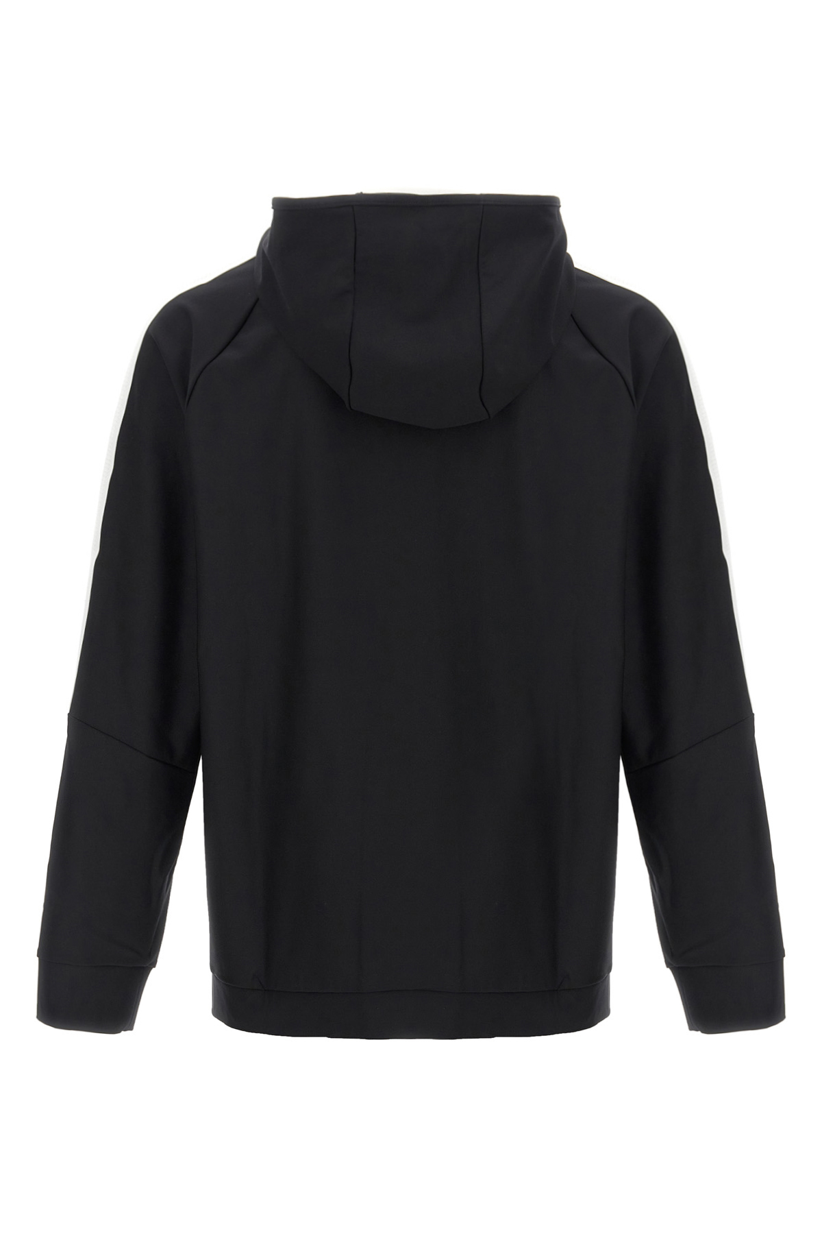 Stretch fabric 'Sicon Mb' hoodie, band detail on shoulder, embossed front logo, pockets, zipper closure. SUSTAINABLE: Product made from recycled polyester.ycled polyester.