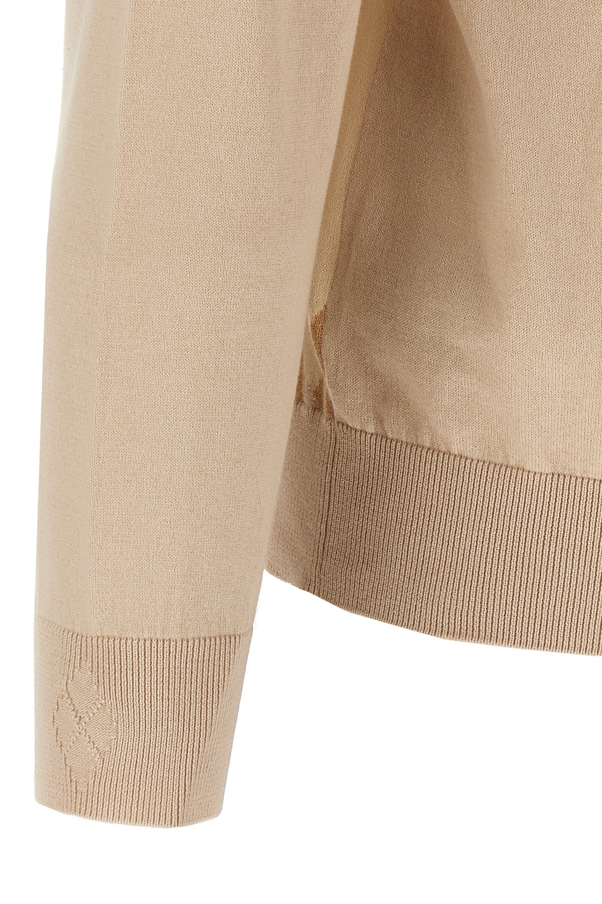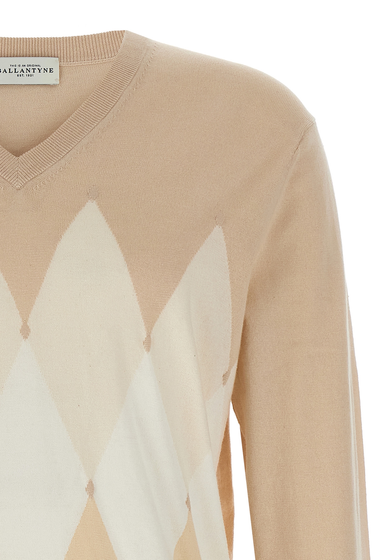 Cotton and cashmere blend sweater with 'Argyle' pattern, V-neck, long cuffed sleeves.