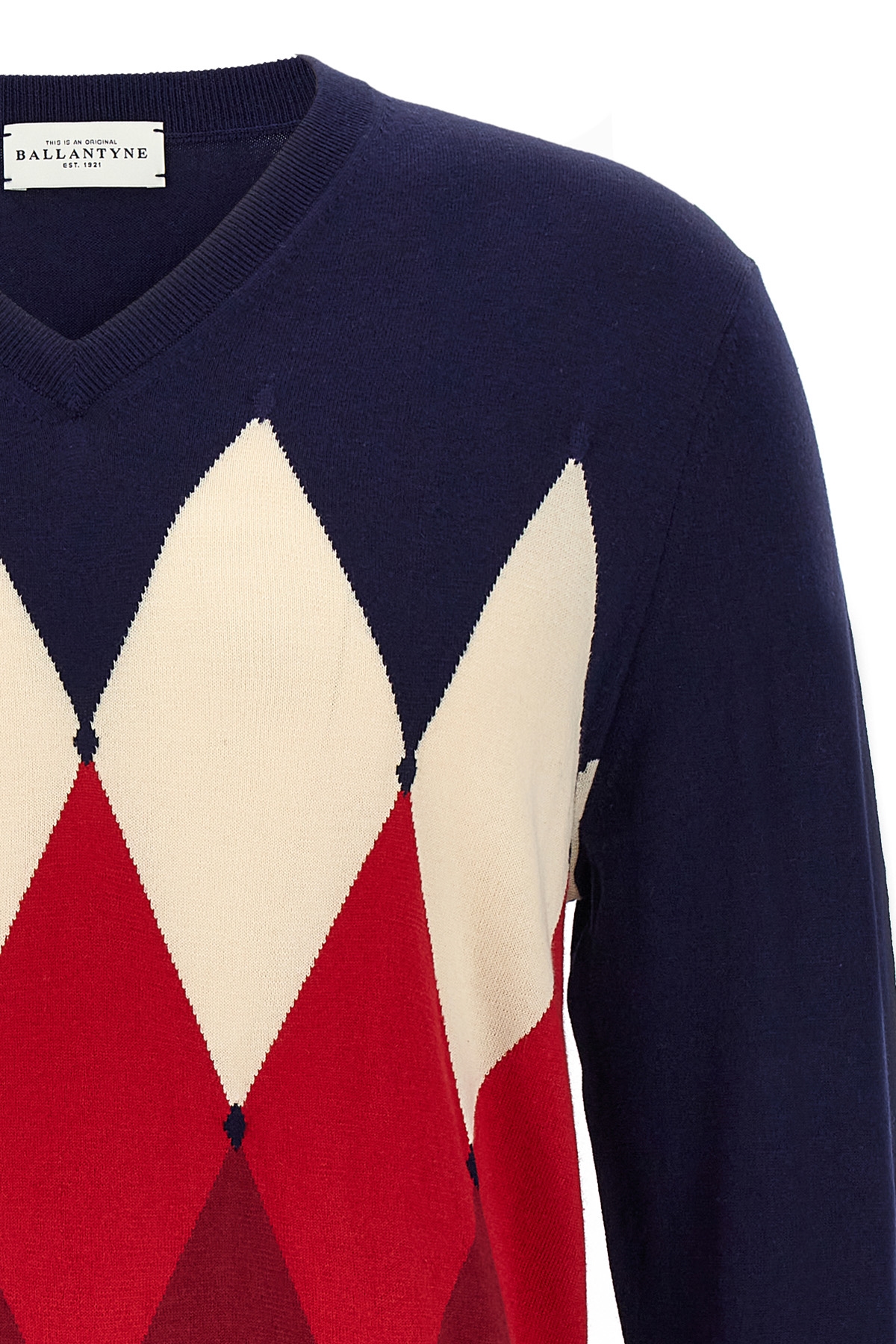 Cotton and cashmere blend sweater with 'Argyle' pattern, V-neck, long cuffed sleeves.