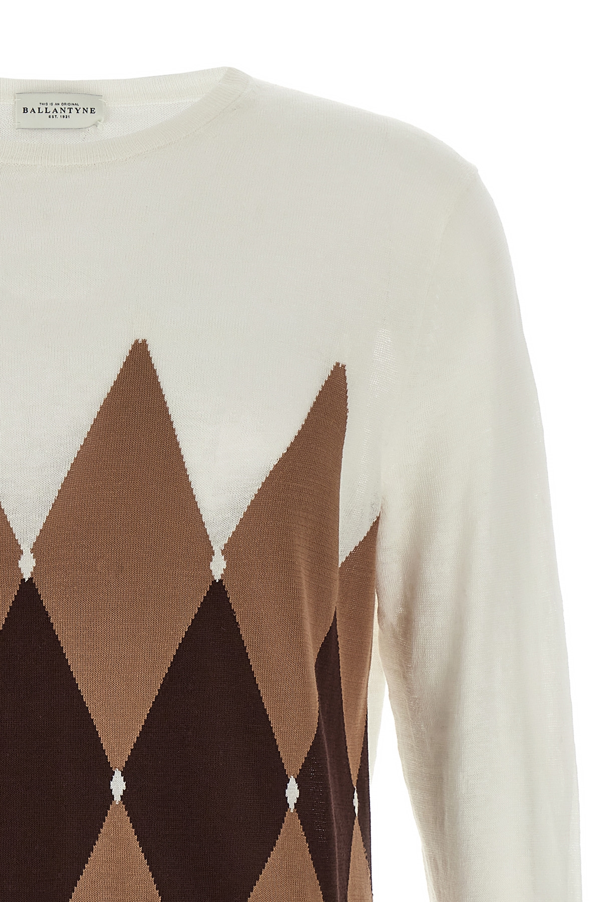 Linen and cotton blend sweater with 'Argyle' pattern, crew neck, long cuffed sleeves.