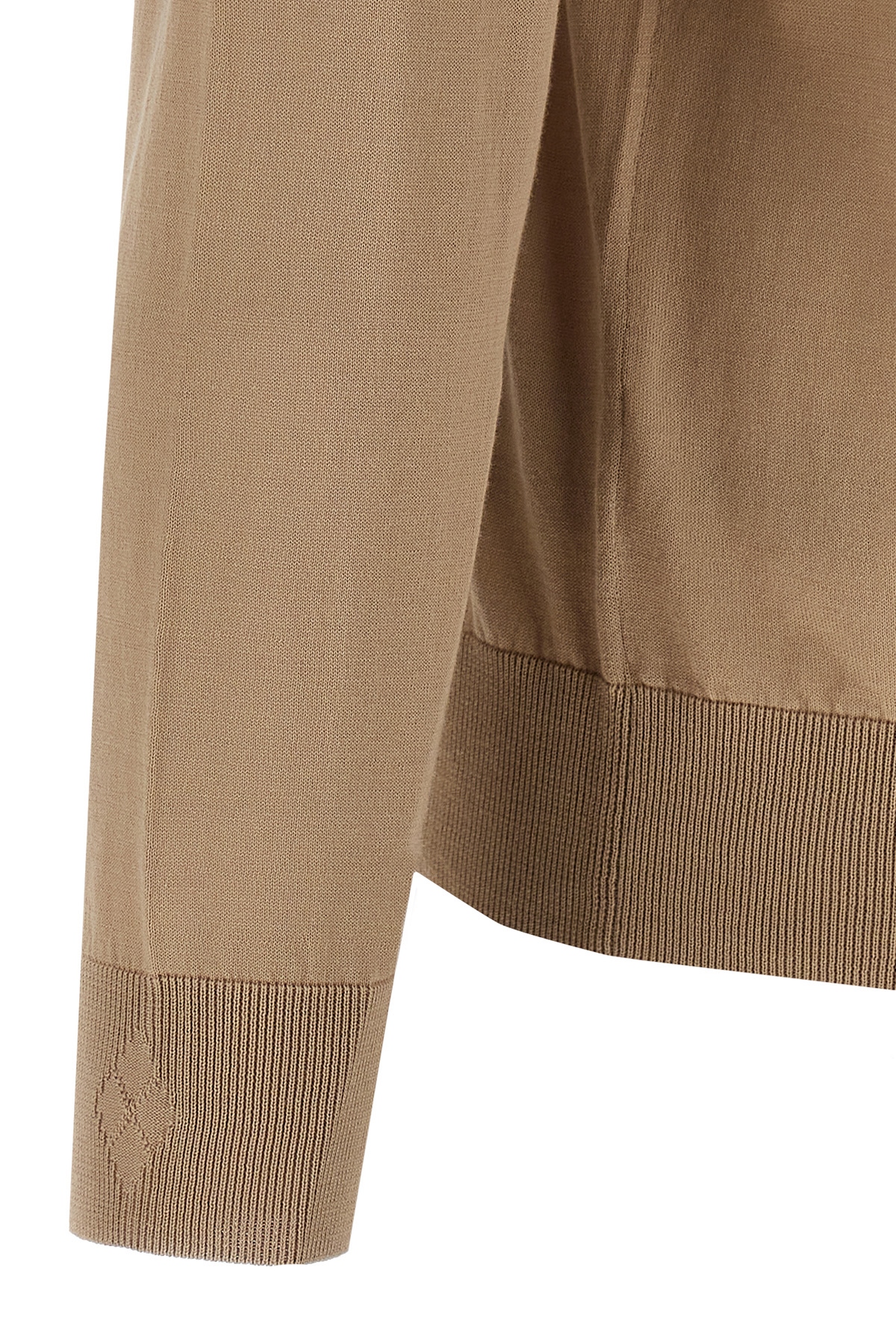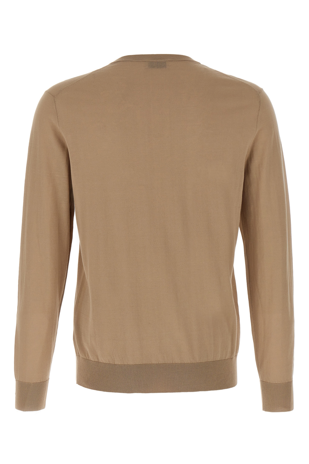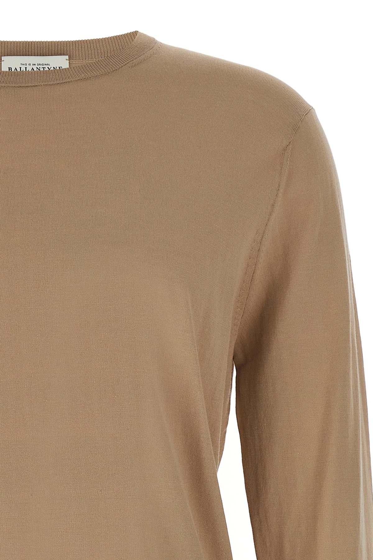 'R Neck' light cotton sweater with crew neck, long cuffed sleeves.