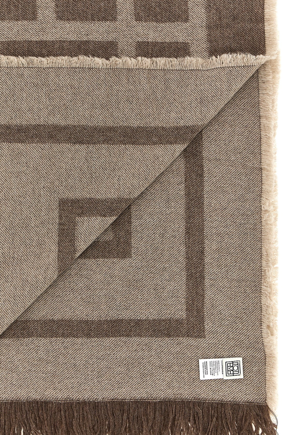 Wool and cashmere blend scarf with jacquard 'Monogram' logo and fringed edges. The location of the logo may vary from the photo.