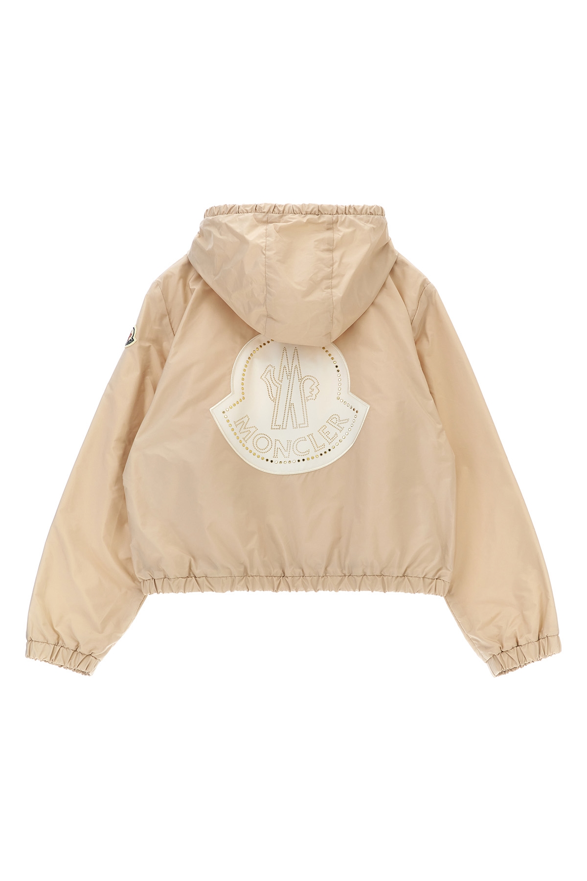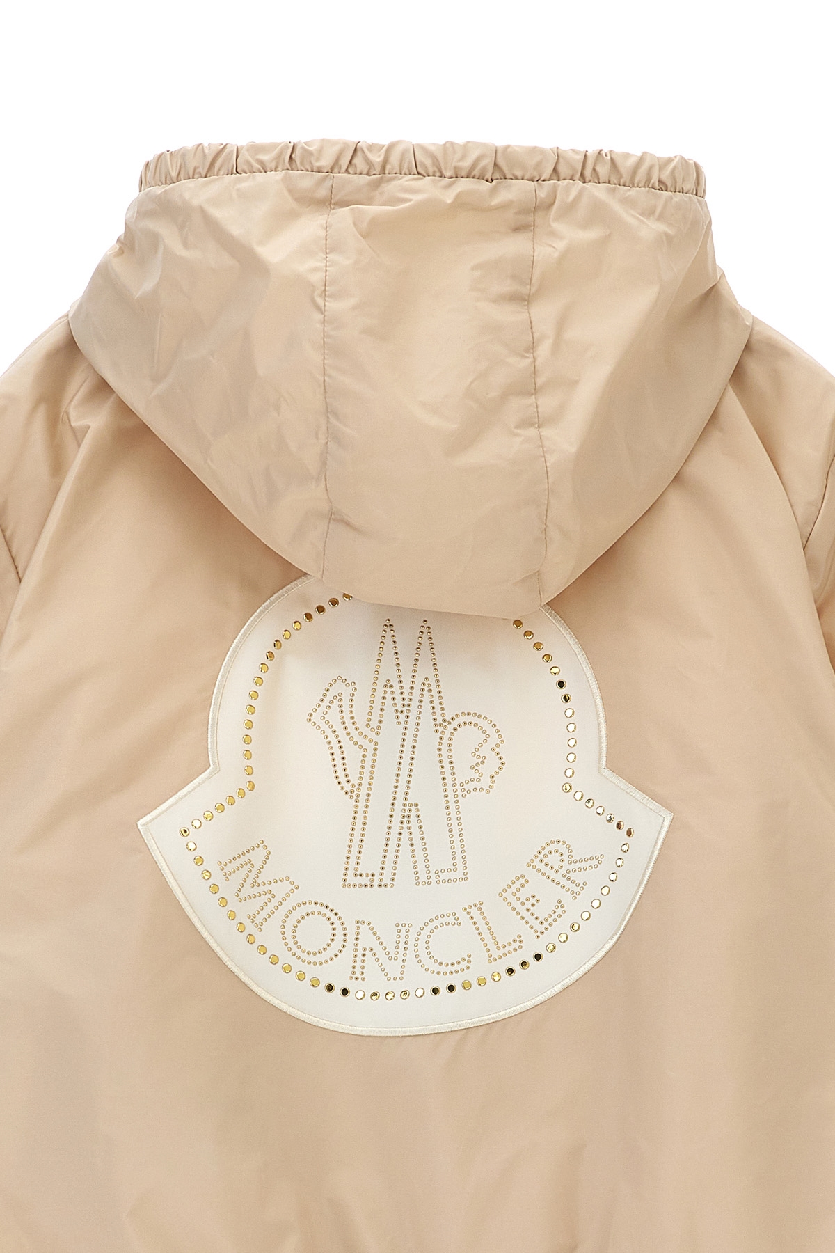 KIDS 'Saria' water-repellent rainwear nylon jacket with maxi logo with back stud applique, hood, zip closure, pockets, long sleeves with elastic cuffs, felt logo patch, elastic on the hem. SUSTAINABLE: product made from recycled materials.