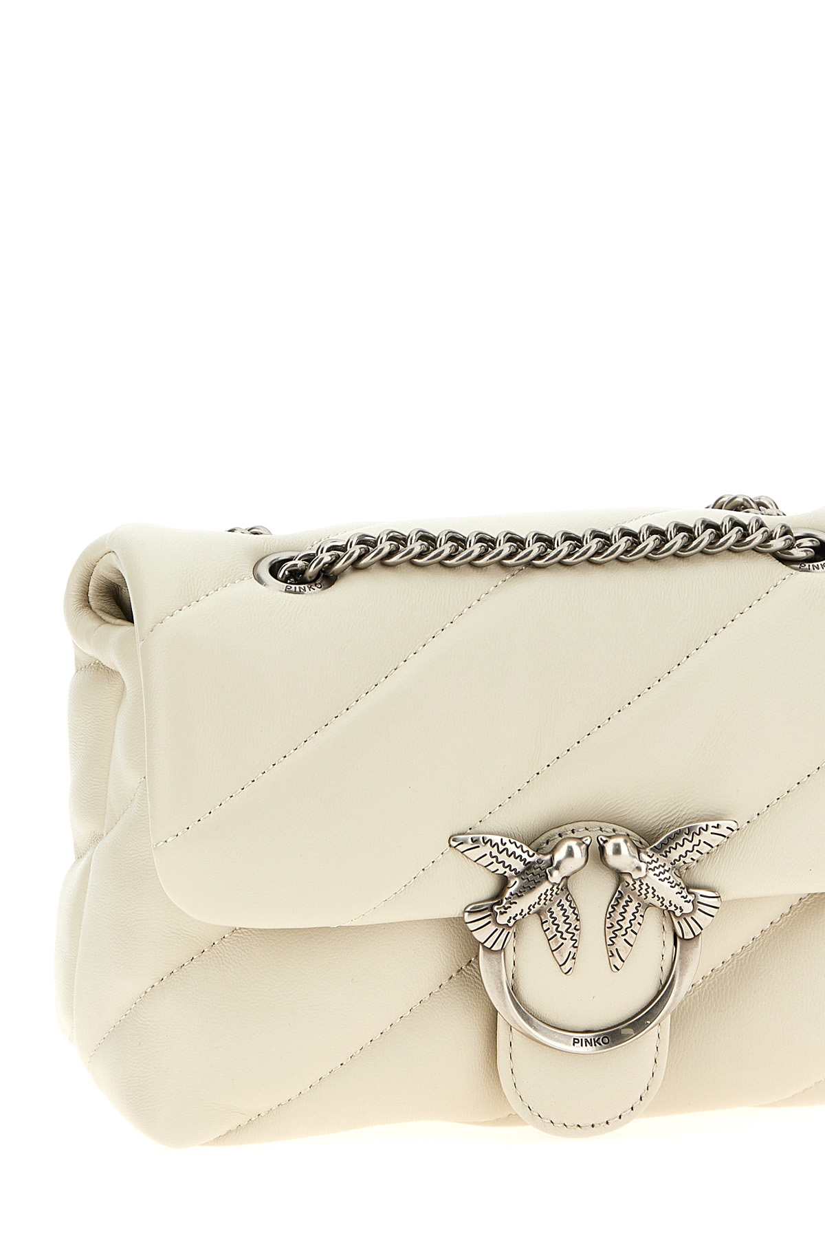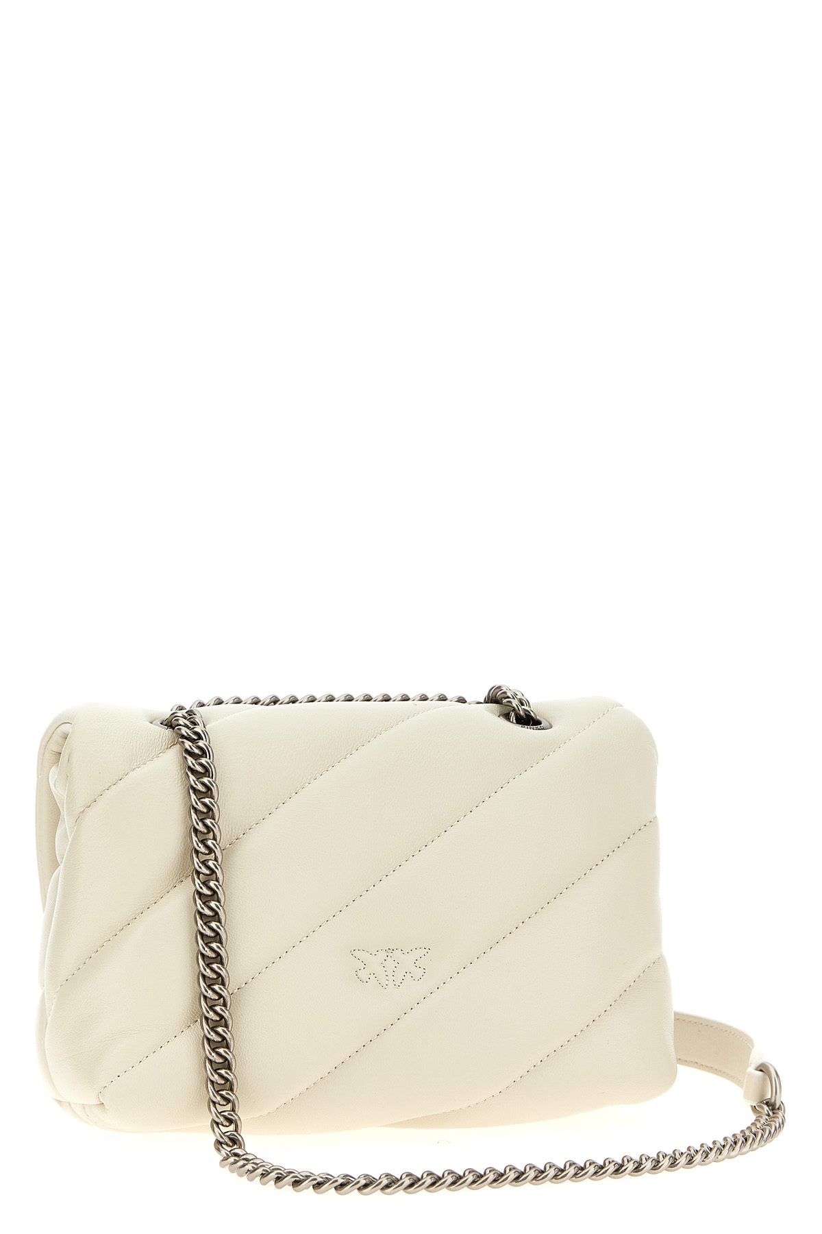 'Love Puff Mini' quilted nappa leather crossbody bag, magnetic flap closure with metal logo applique, sliding chain shoulder strap with leather protections.