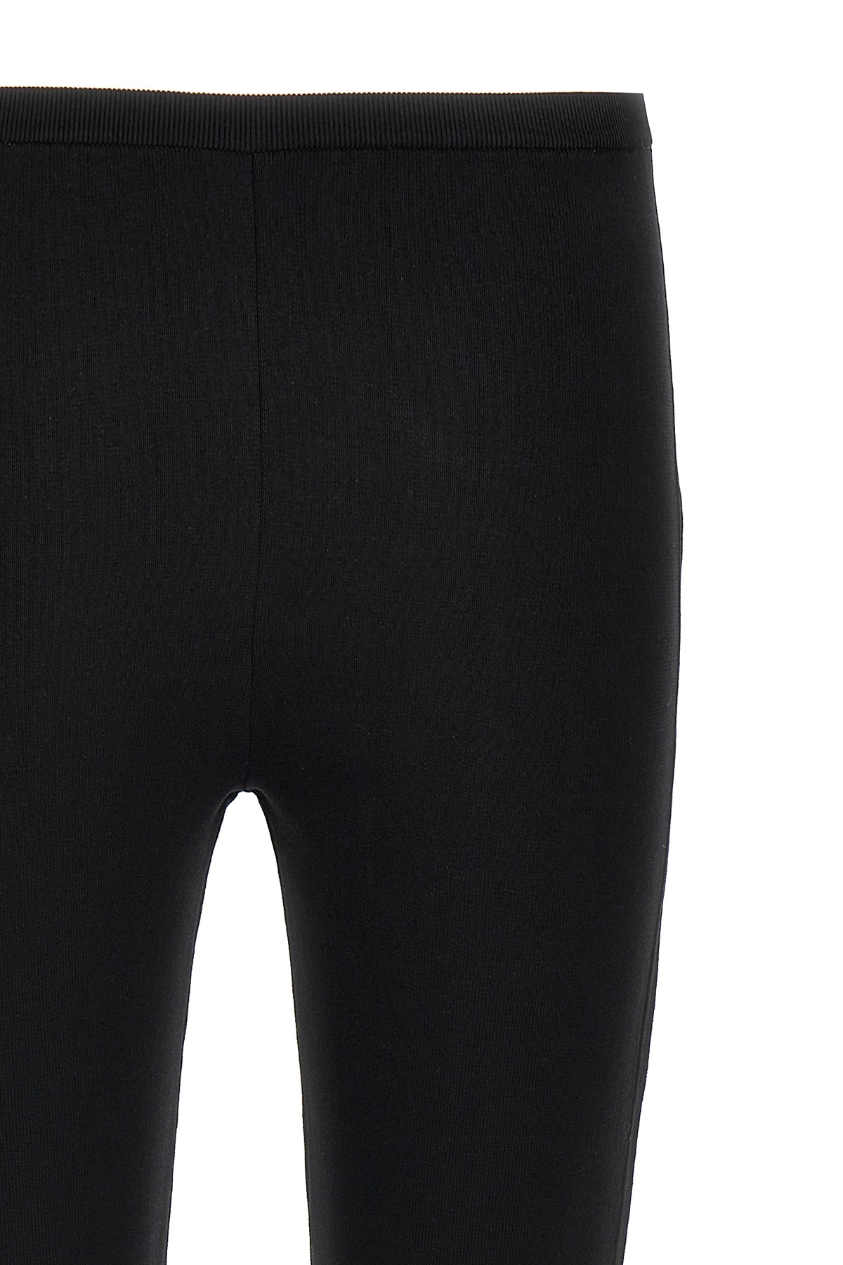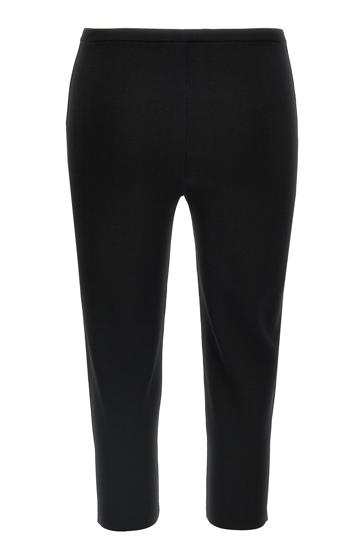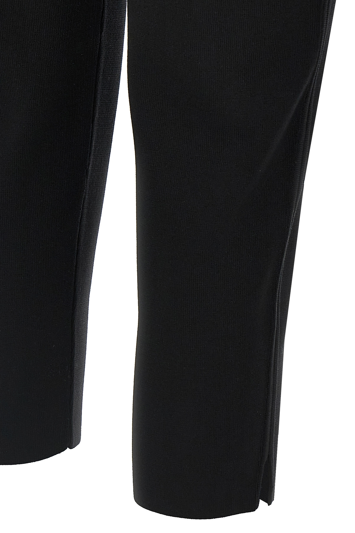 Stretch leggings, high waist model with capri leg, elastic waistband, slits on the bottom of the leg.