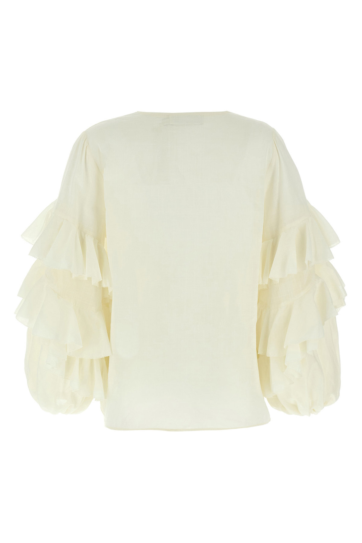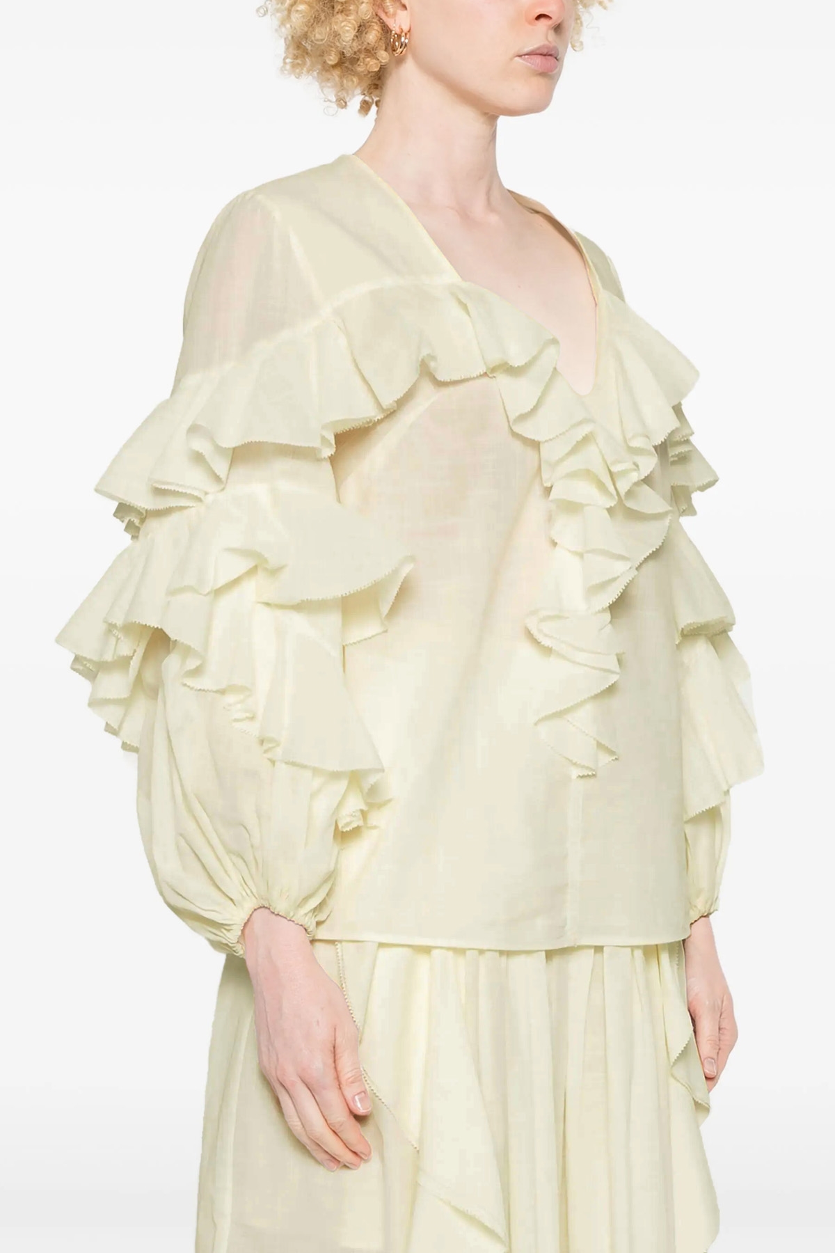 Acacia Ruffle' cotton blouse with V-neck with button closure and ruffles, wide long sleeves with elastic cuffs and all-over ruffles.