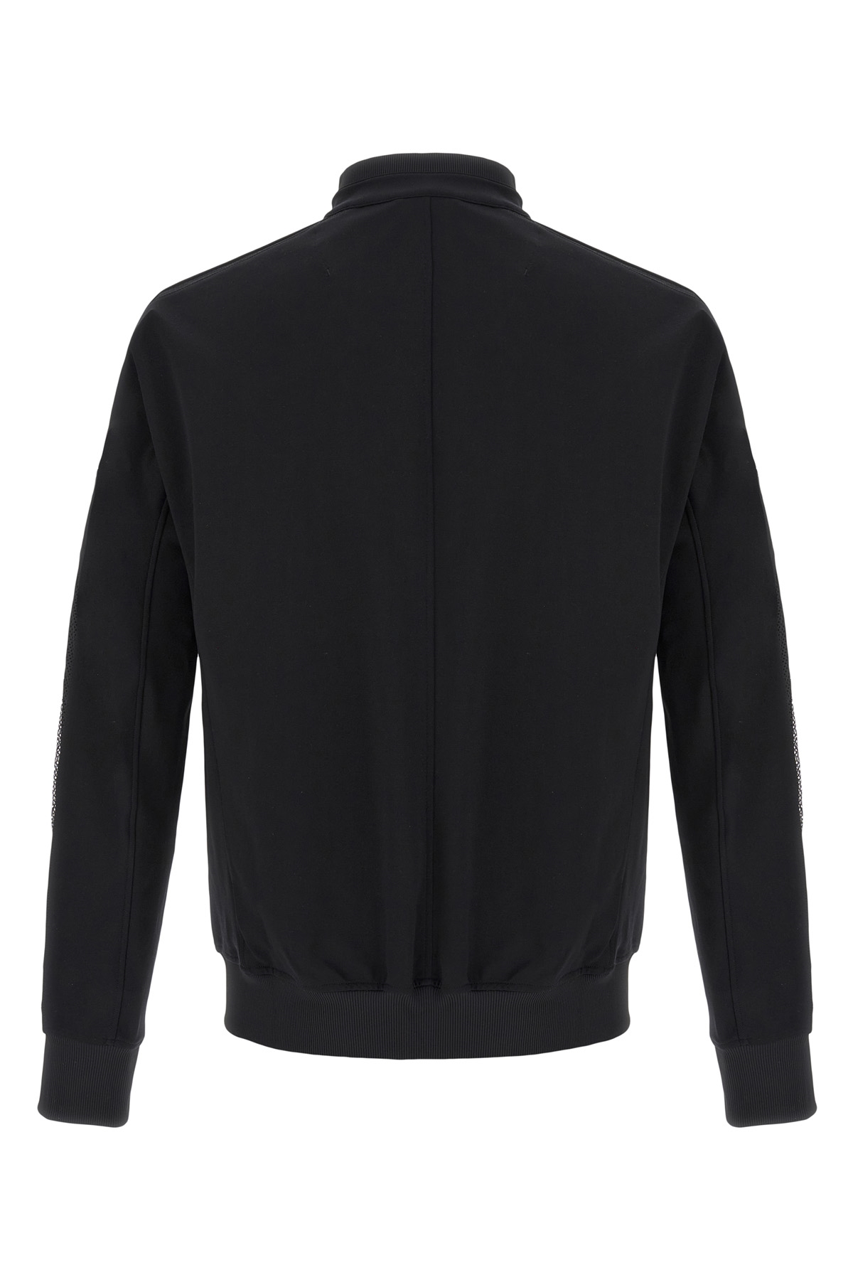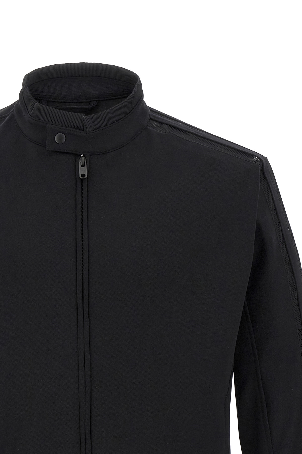 'Y-3 3-Stripes' stretch fabric sweatshirt with front tone-on-tone logo, zip closure, high neck with snap button closure, long sleeves with cuffs and perforated mesh inserts, pockets.
