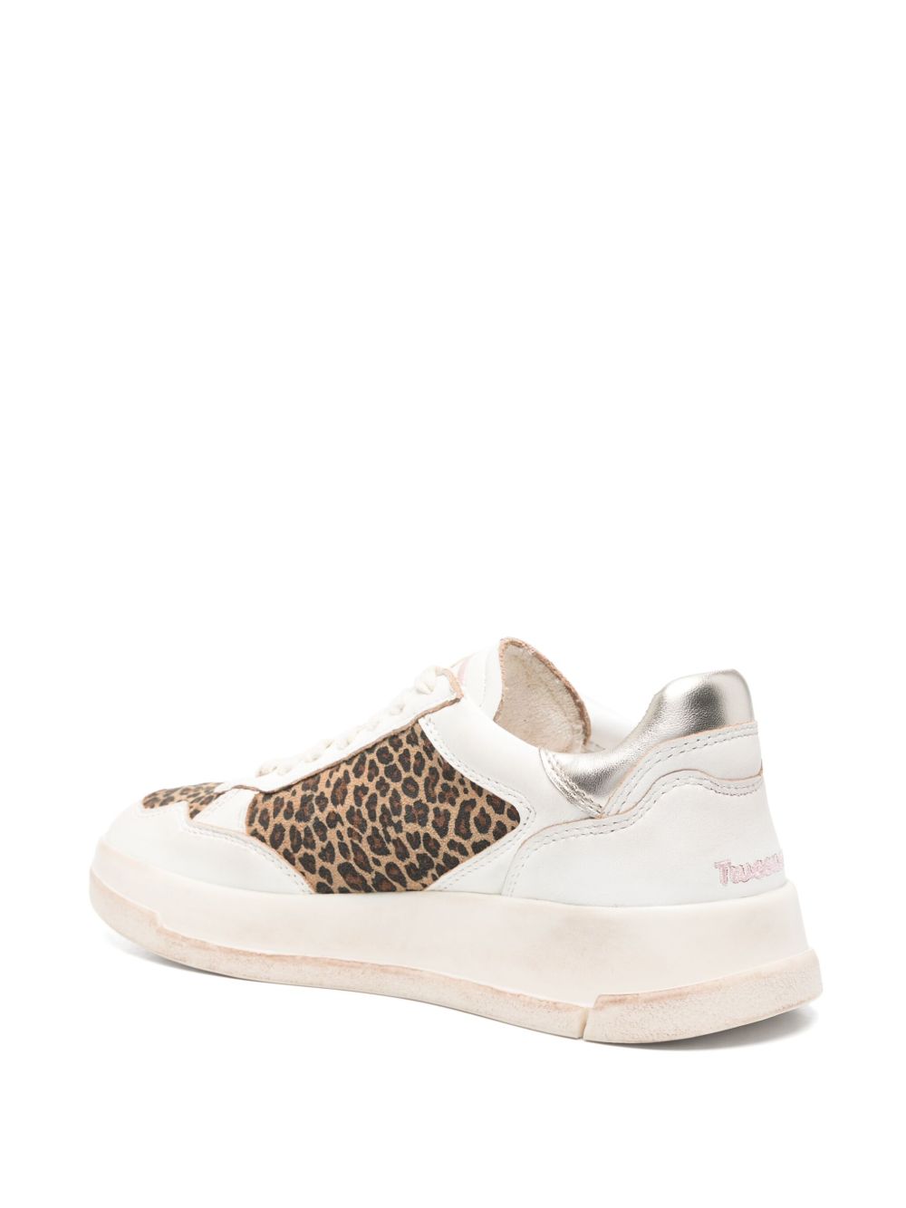 white front lace-up fastening leopard print chunky sole embroidered logo to the rear
