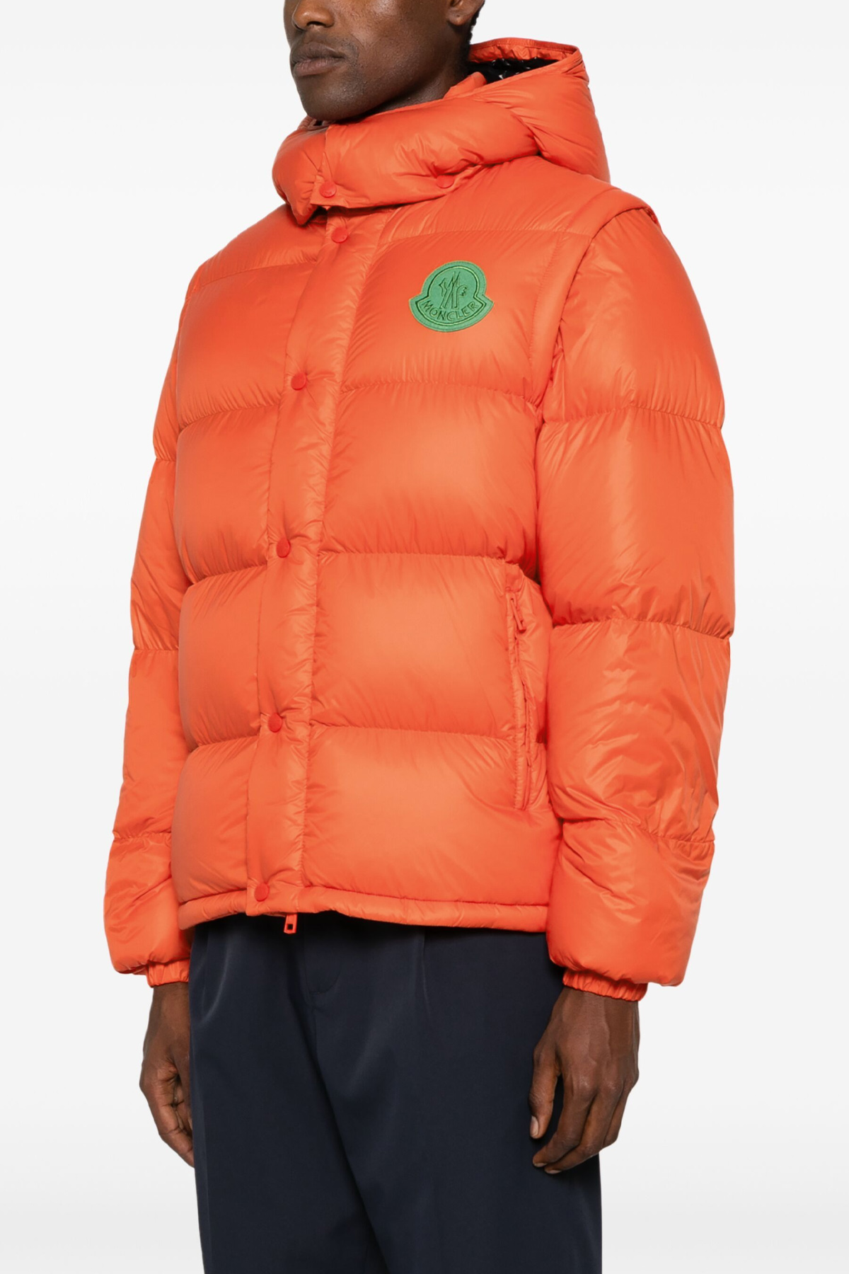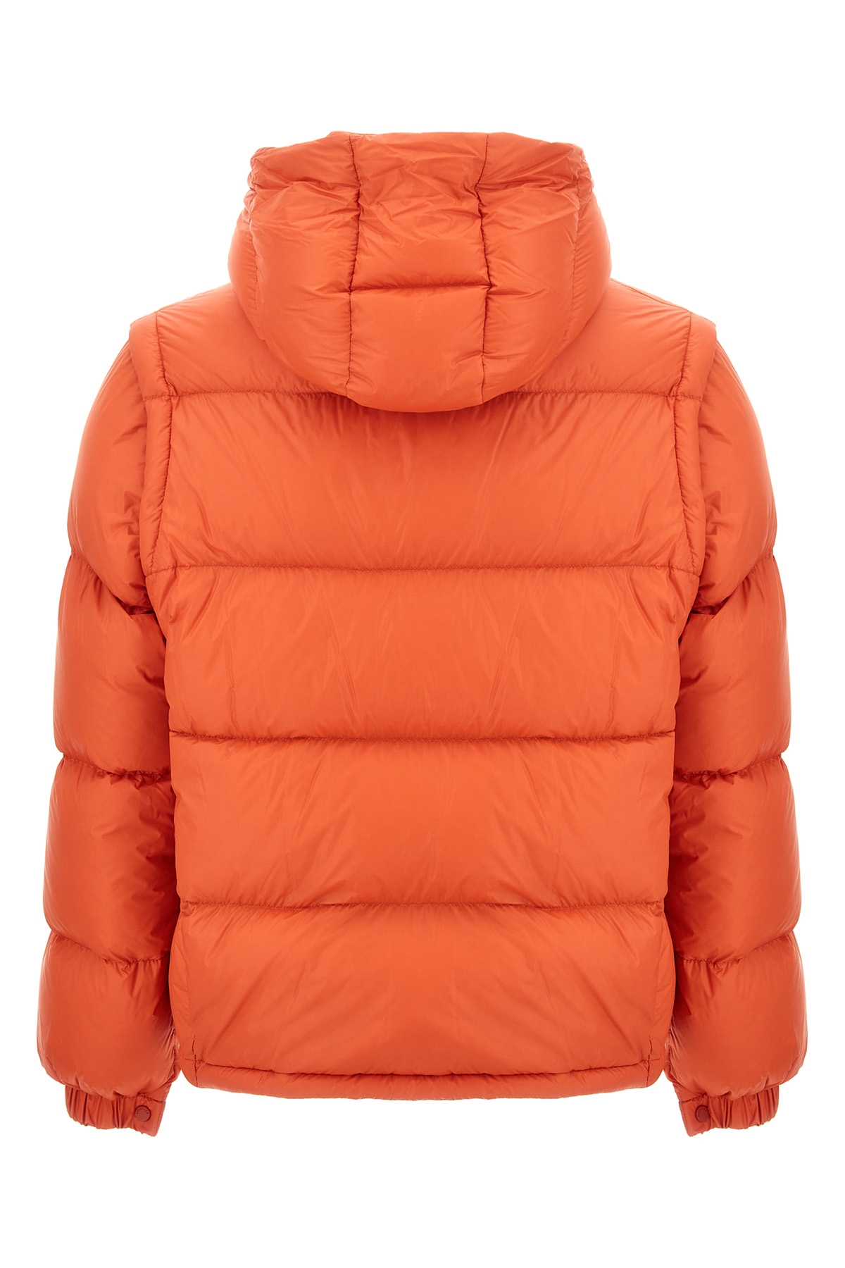 2 in 1 'Cyclone' padded nylon down jacket, zip and button closure, removable long sleeves with knitted cuffs, pockets, front logo patch.