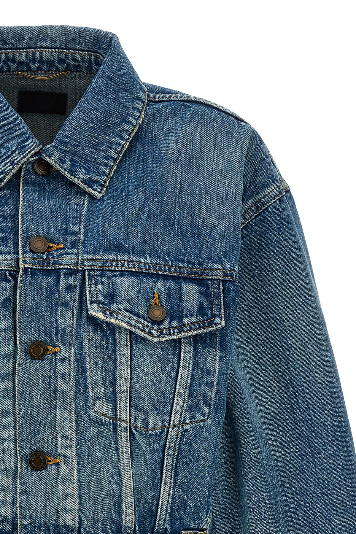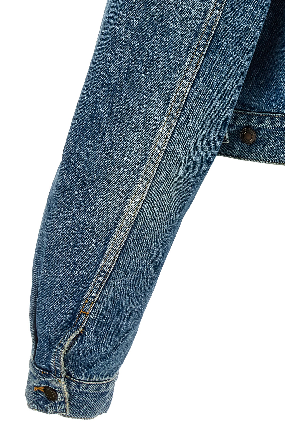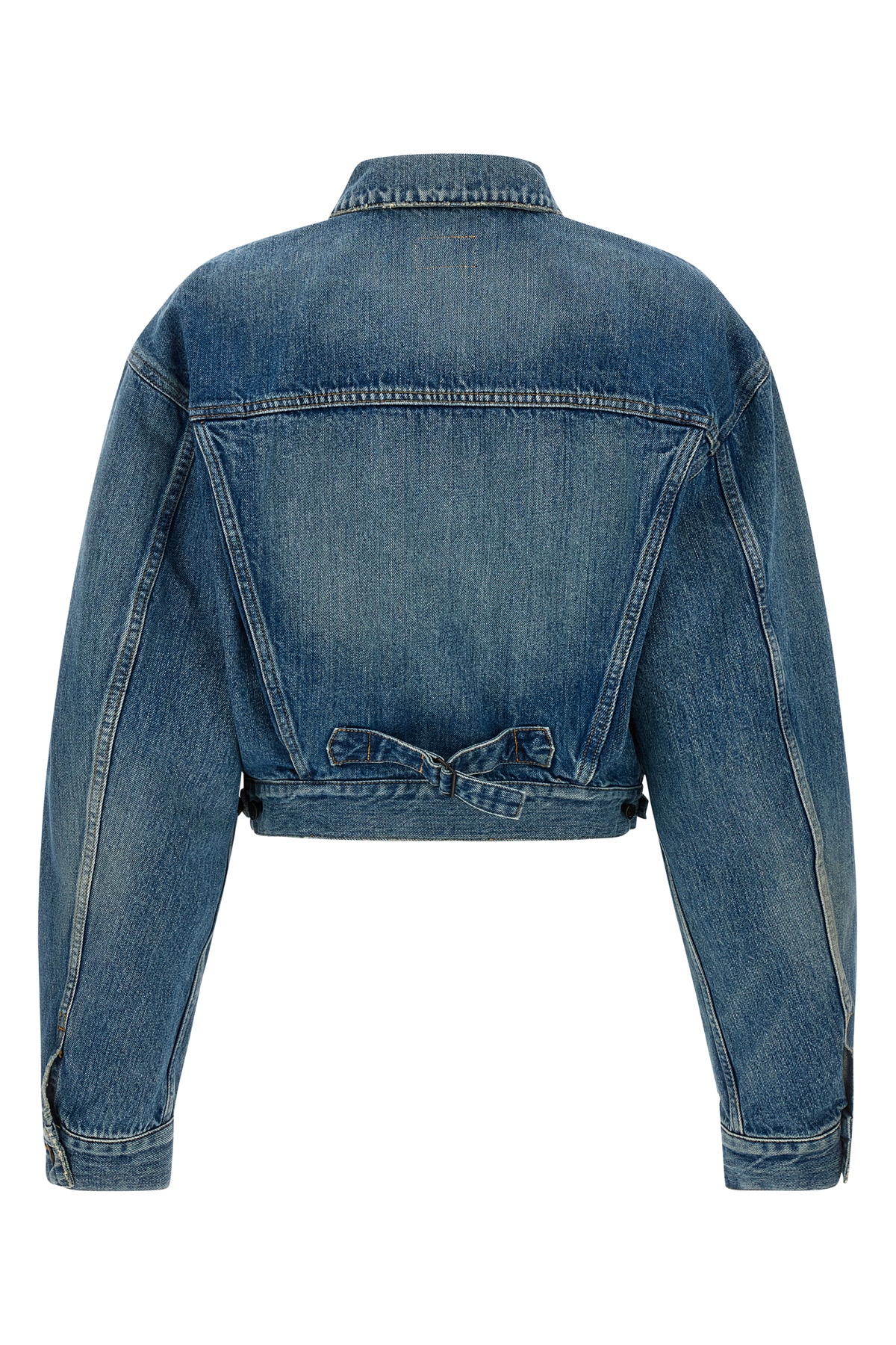 '80's' stonewashed cotton denim jacket, crop model, button closure, pockets, long cuffed sleeves, adjustable strap at the back.