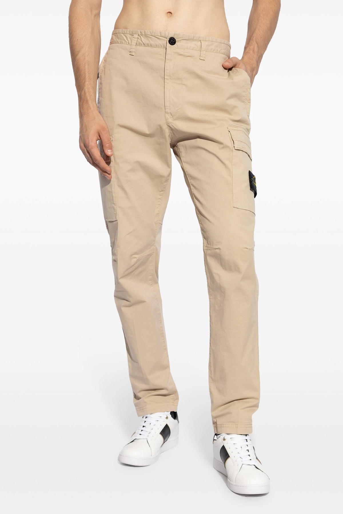 Cargo pants in stretch cotton with logo badge, zip and button closure, pockets, tapered leg.