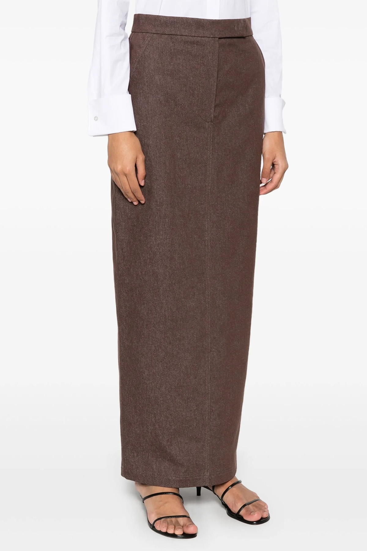Long 'Pianosa' denim-effect cotton skirt, unlined with back split, pockets, zip hook and front button closure.