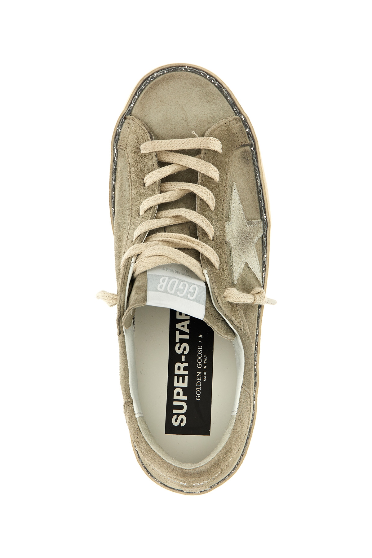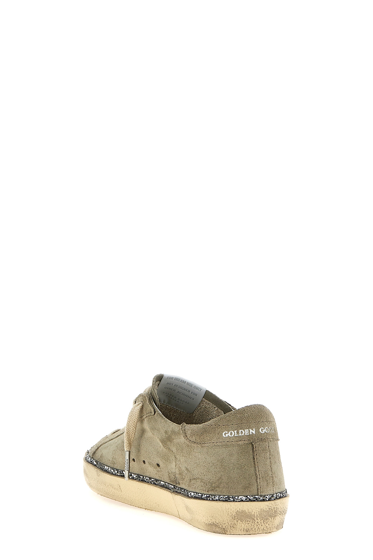 'Superstar' suede sneakers with used-effect details, contrast side star, contrast glitter between sole and upper, lace-up closure, rubber sole.