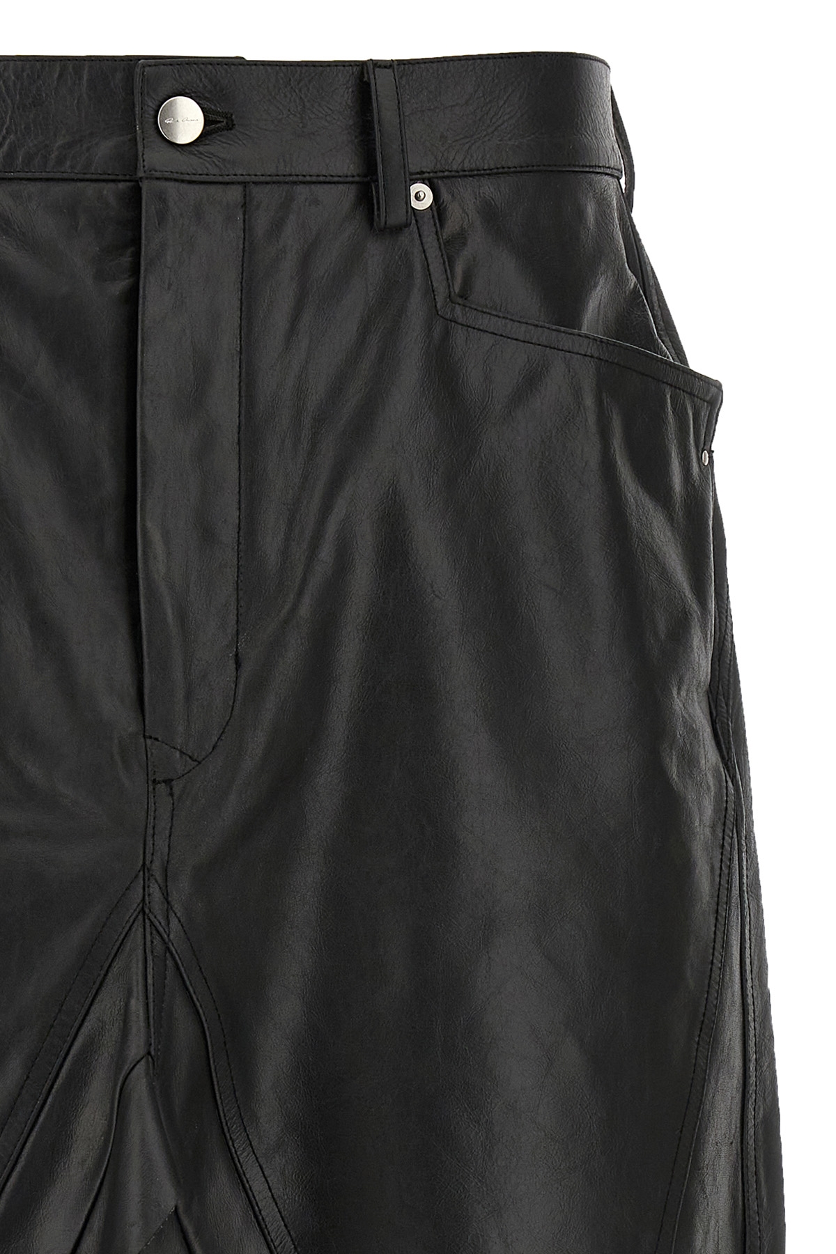 'Slivered Skirt' leather skirt with front and back split, underskirt, zip and button closure, pockets, raw cut hem.