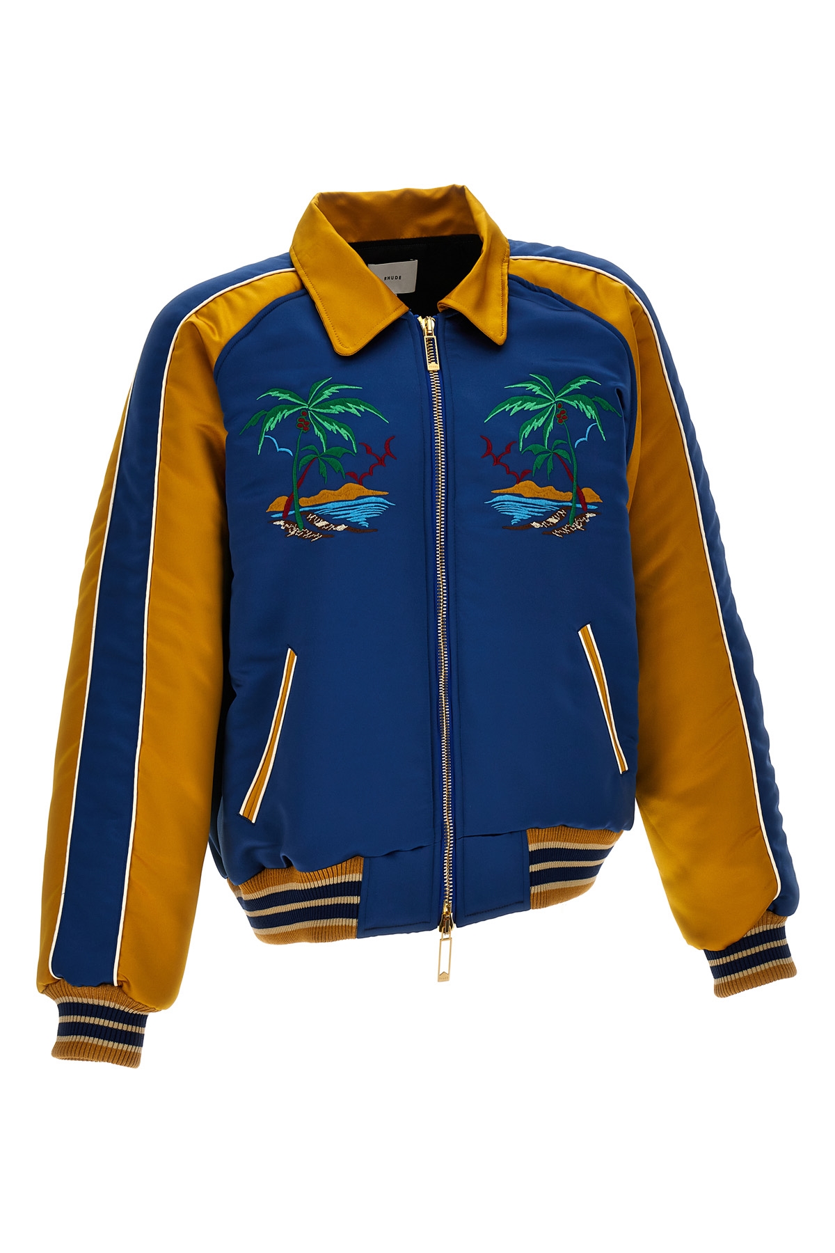 'Palm Eagles Souvenir' satin bomber jacket with all-over embroidery, zip closure, pockets, long sleeves with knitted cuffs.