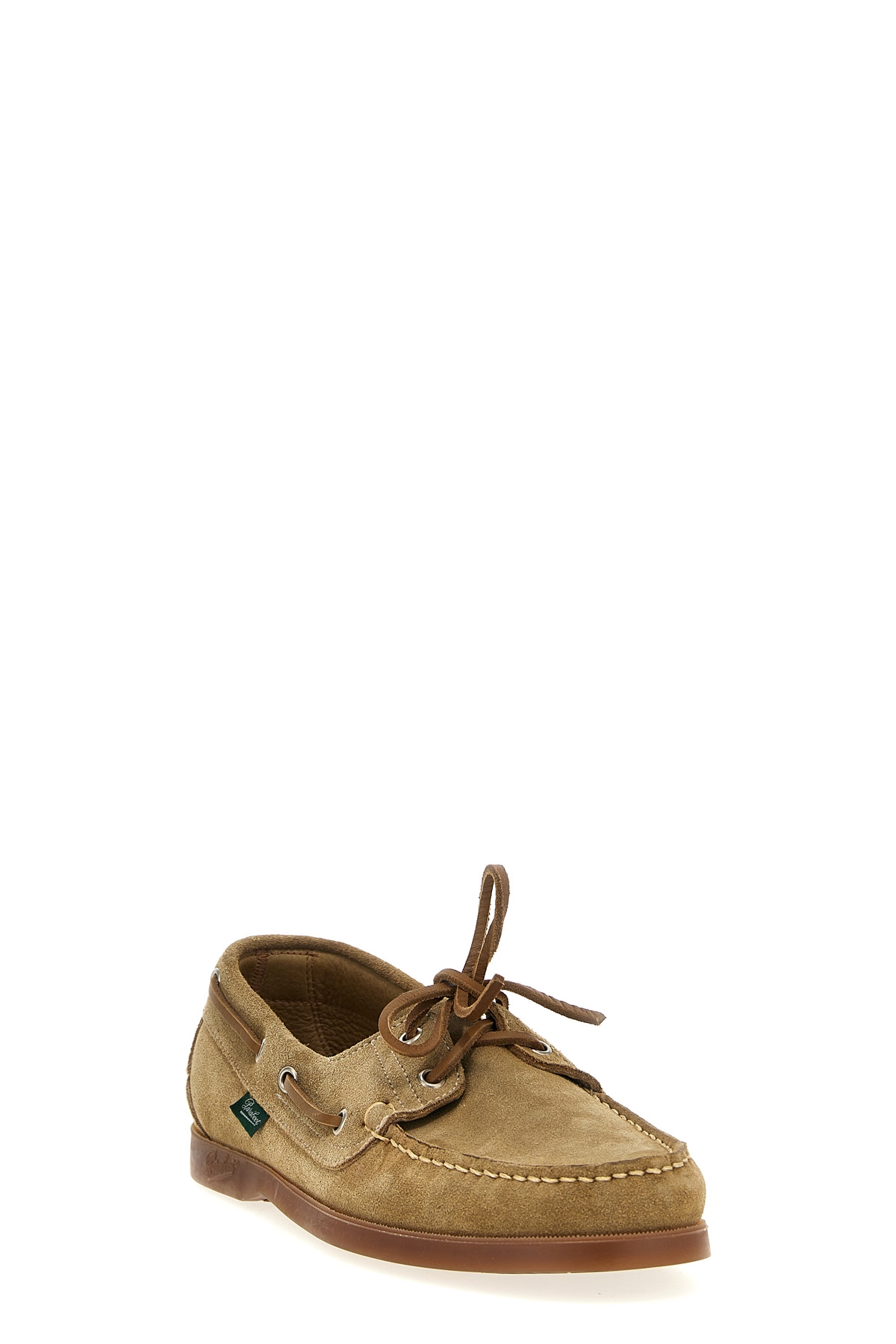 'Barth' suede boat shoe with laces and rubber sole. Paraboot products undergo treatments that preserve the authenticity and freshness of the leather, patina may form when not in use, just remove it with a damp cloth.