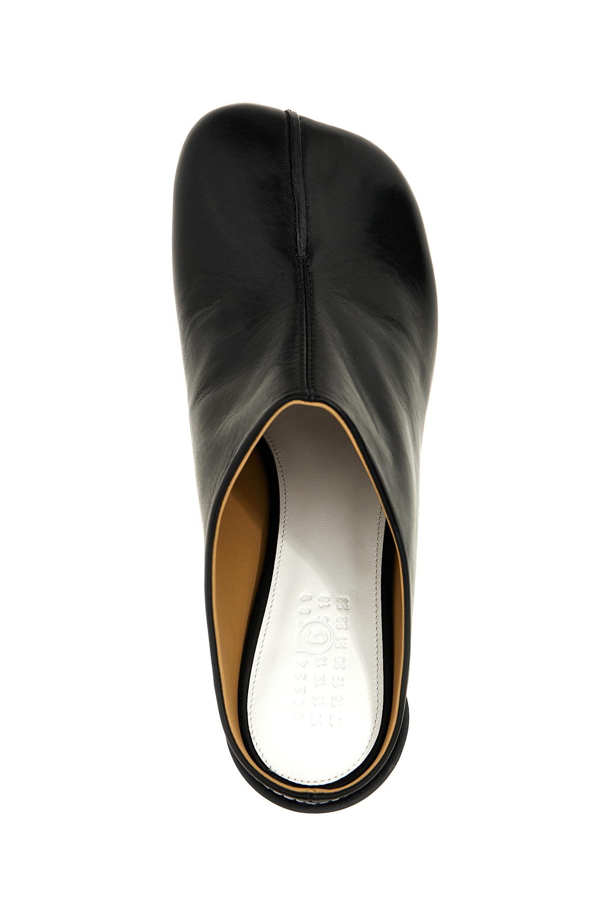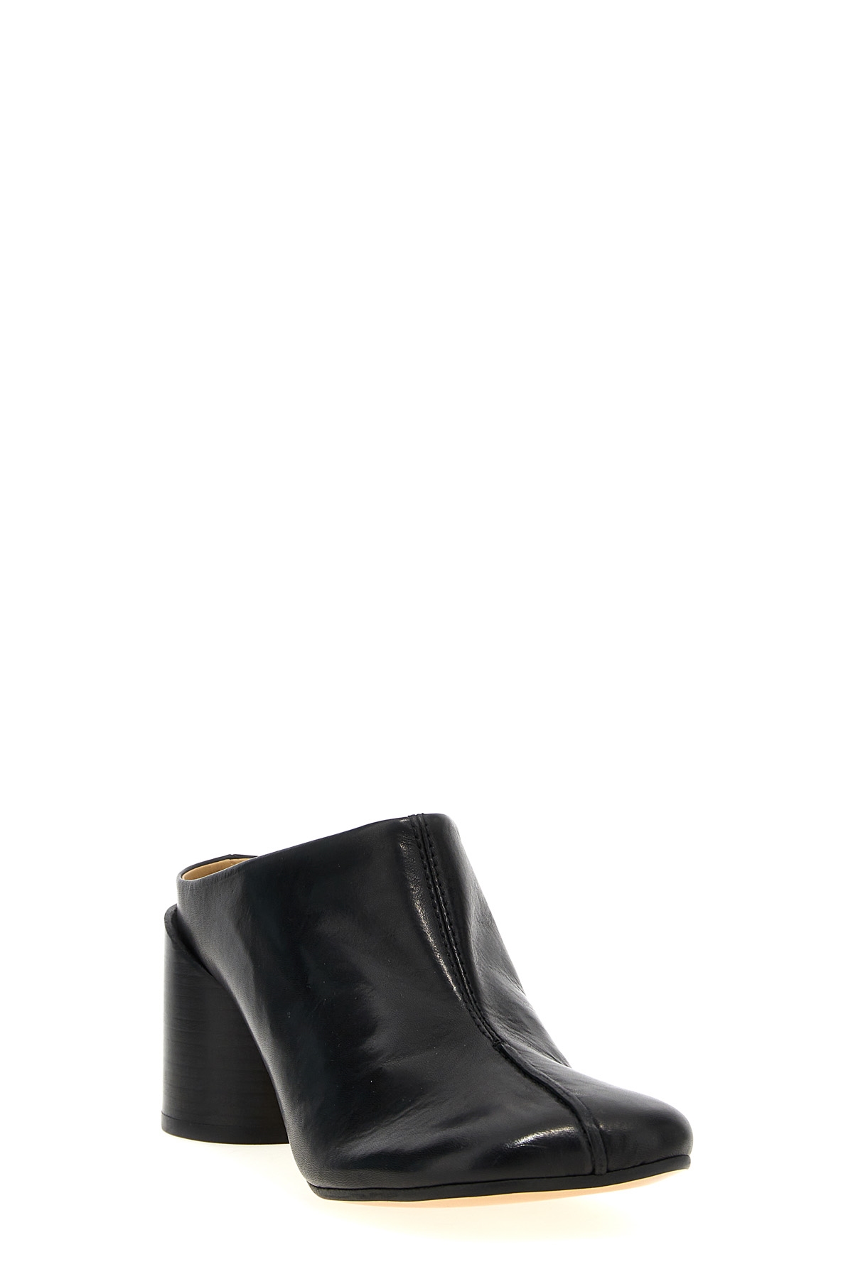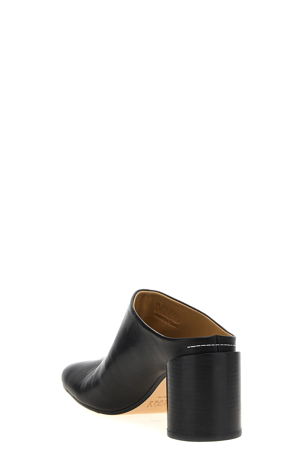 'Anatomic' sabots in vintage soft solid colour leather with shaped toe cap and chunky heel, 'White stitch line' at the back.