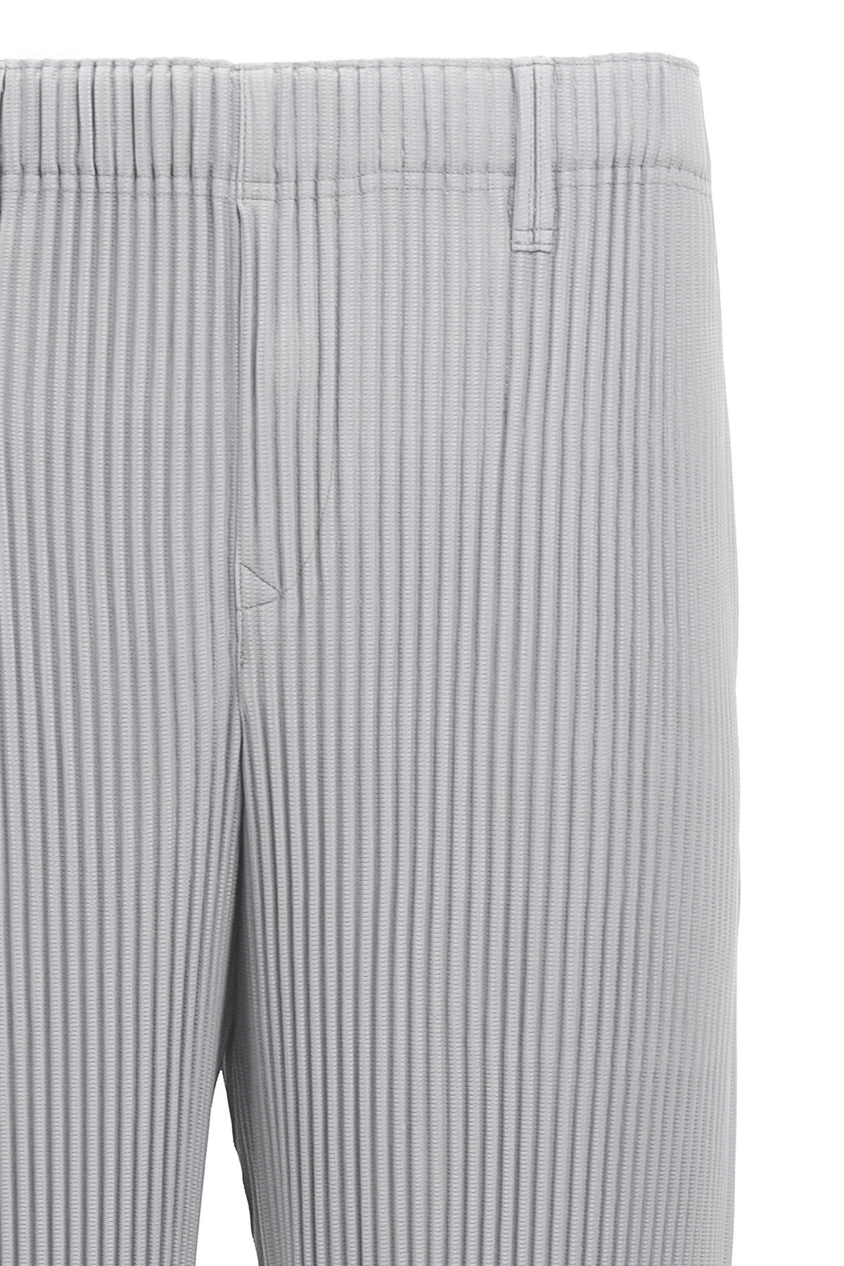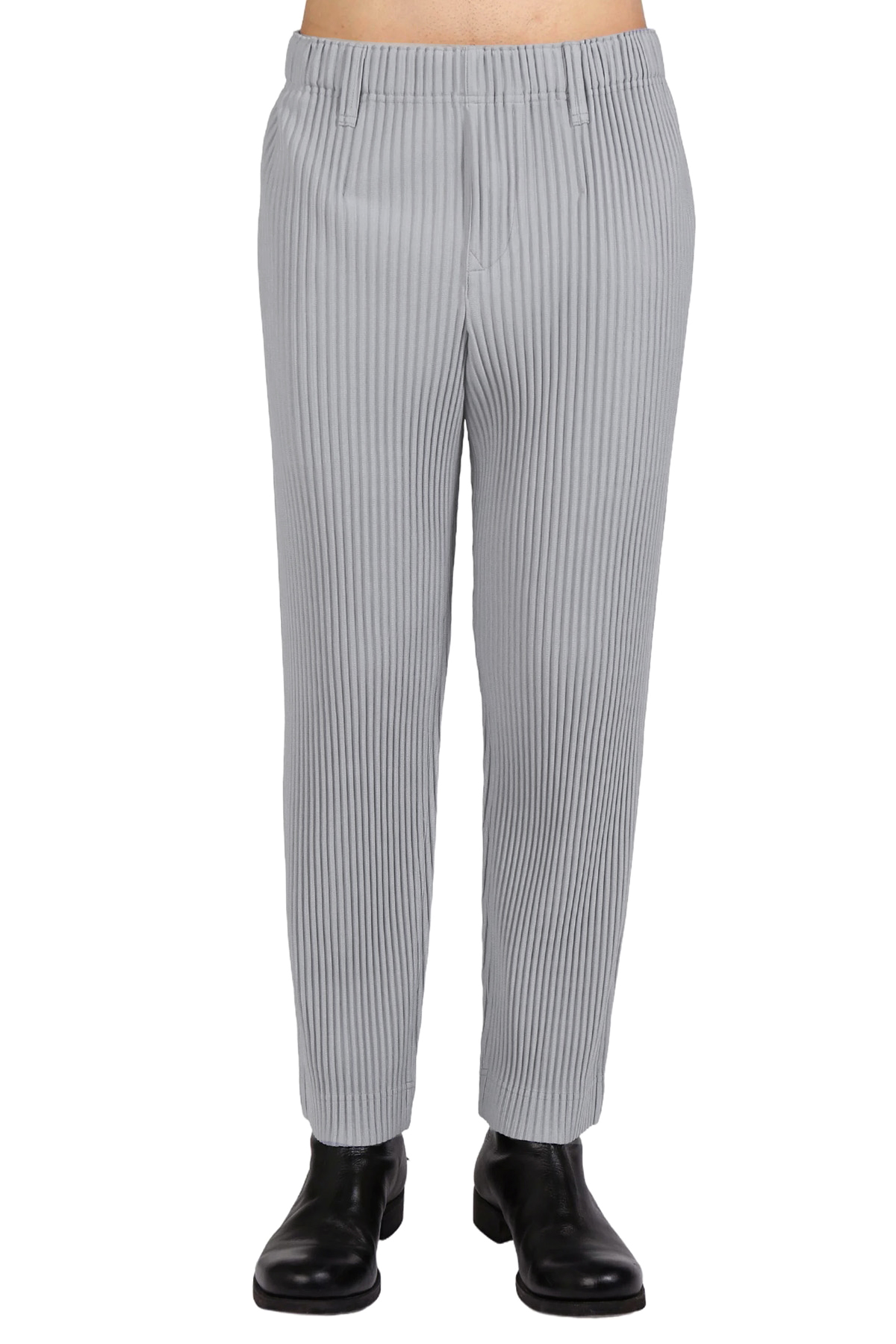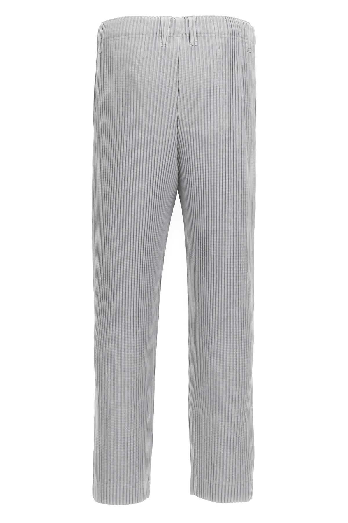 Pleated fabric trousers, elastic waistband, pockets, straight leg.
