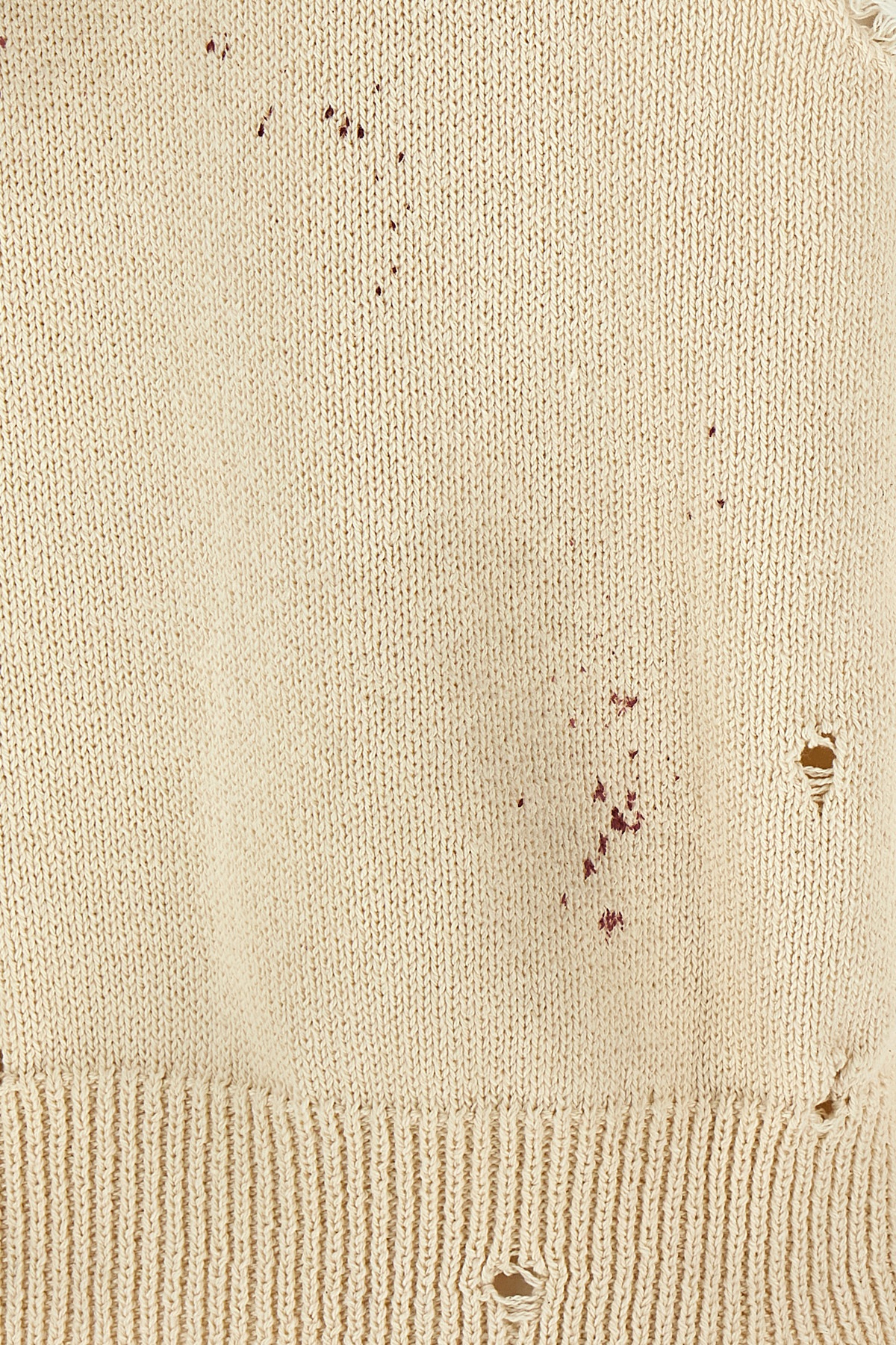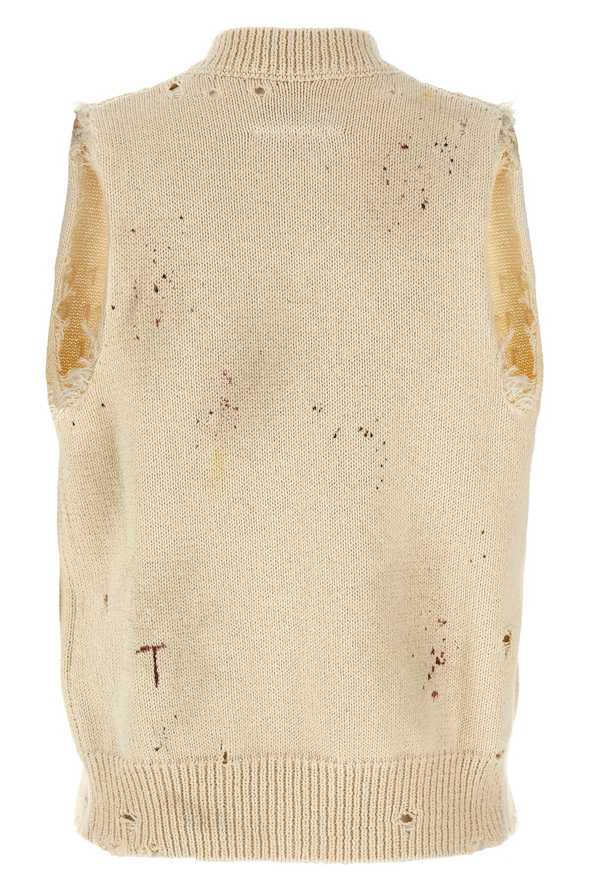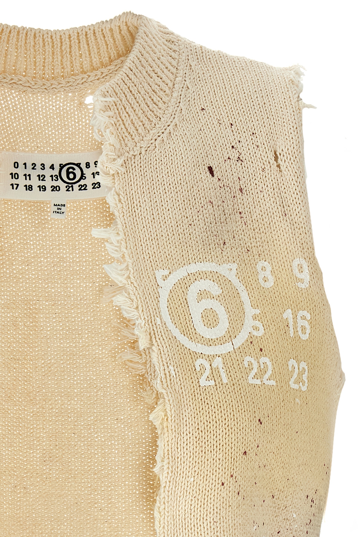 Knitted cotton blend vest with rips, paint stains and fringes, front 'Numeric signature MM6' logo print.