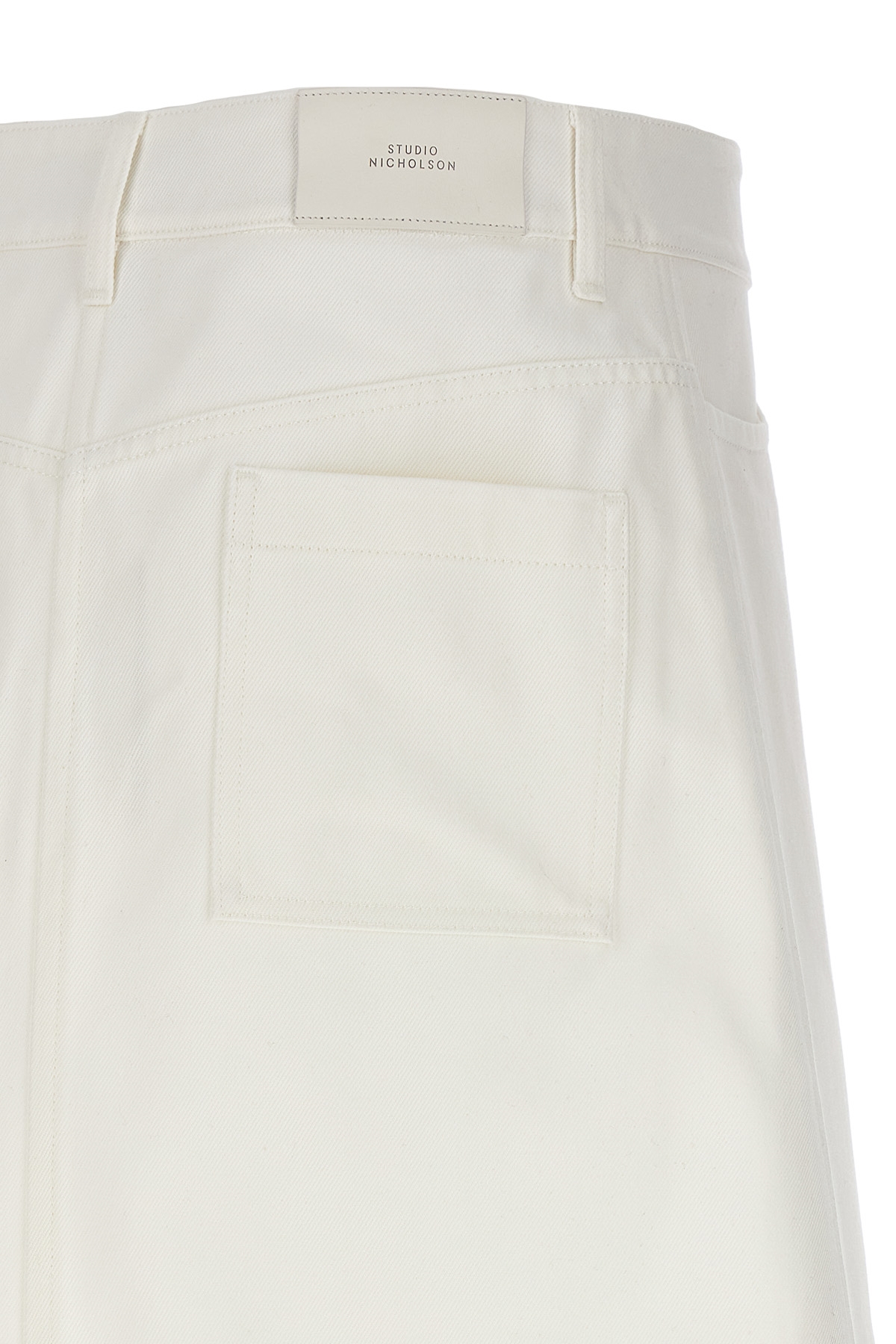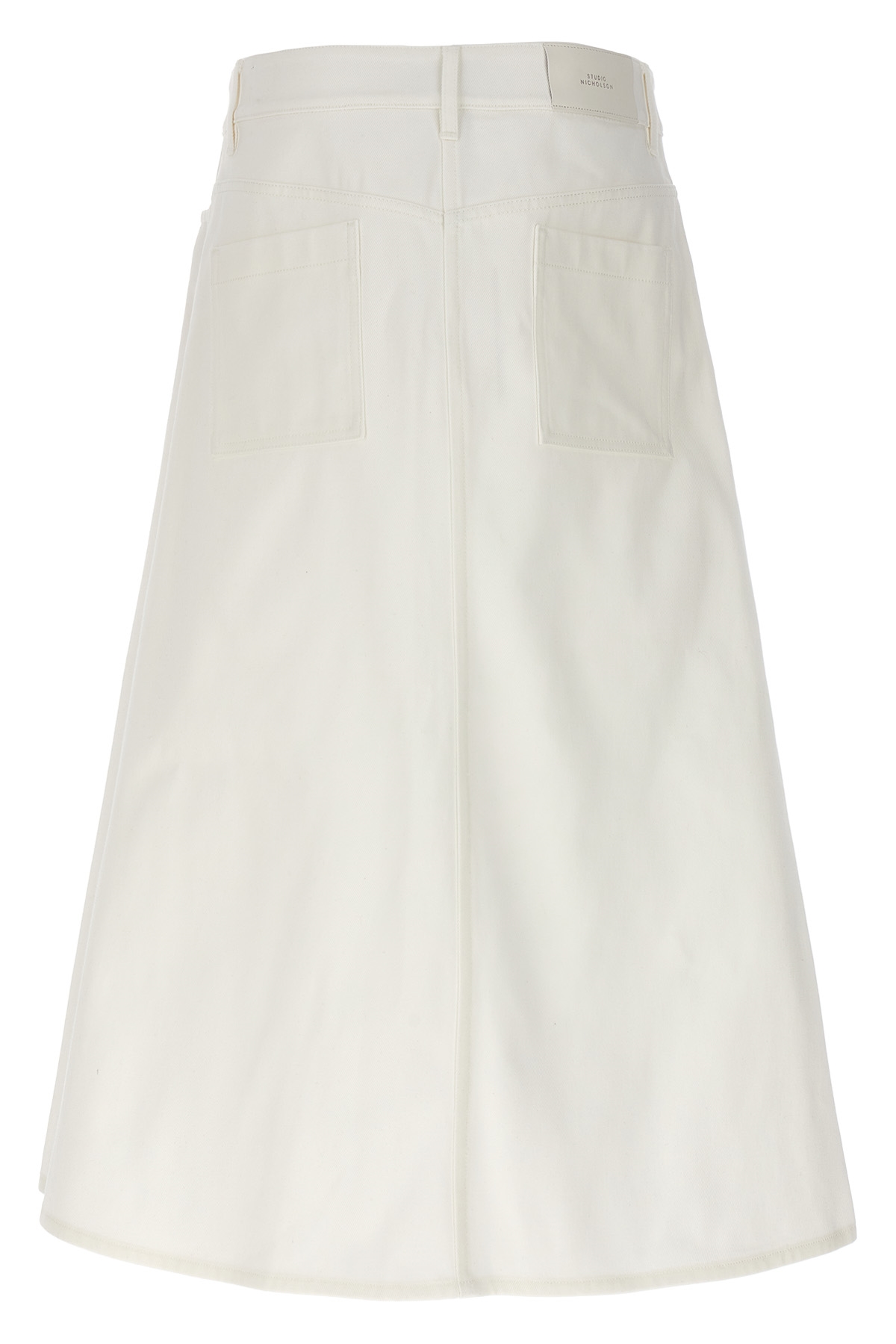 'Baringo' midi skirt in cotton denim with mid waist, zip and button closure, pockets.