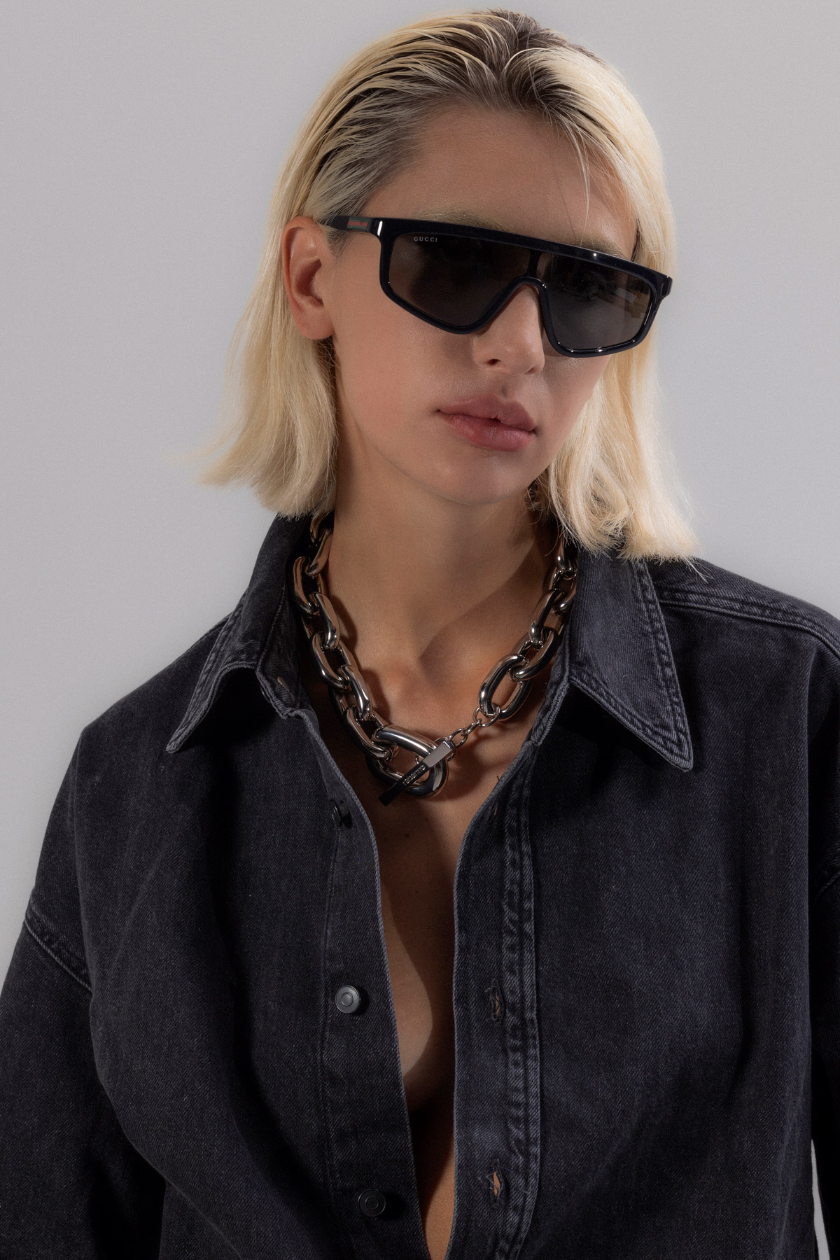 Acetate sunglasses with 'Nastro Web' detail on the temples, mask lenses.