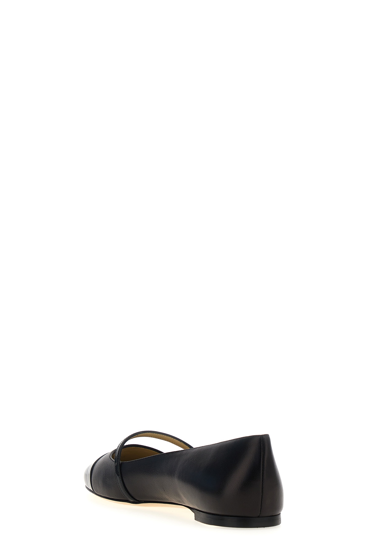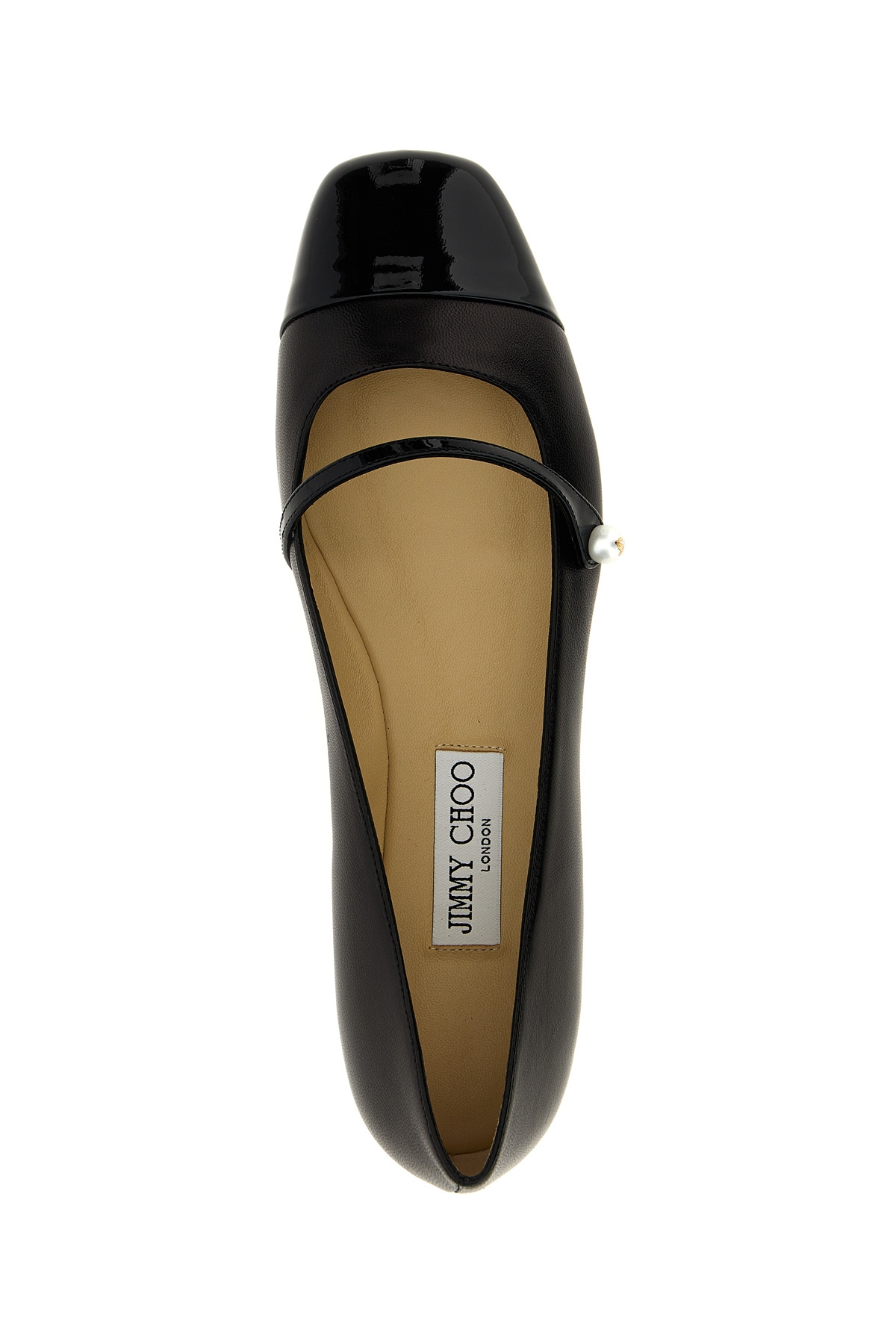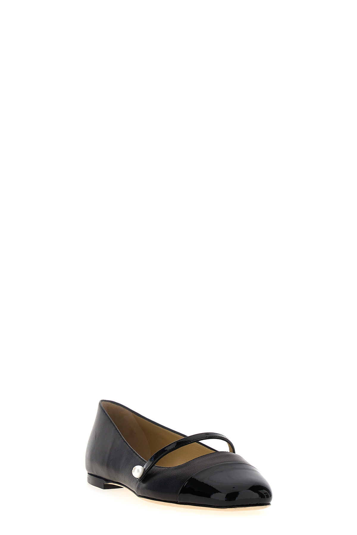 Elisa ballet flats in nappa with patent leather toe, and band adorned with pearl.