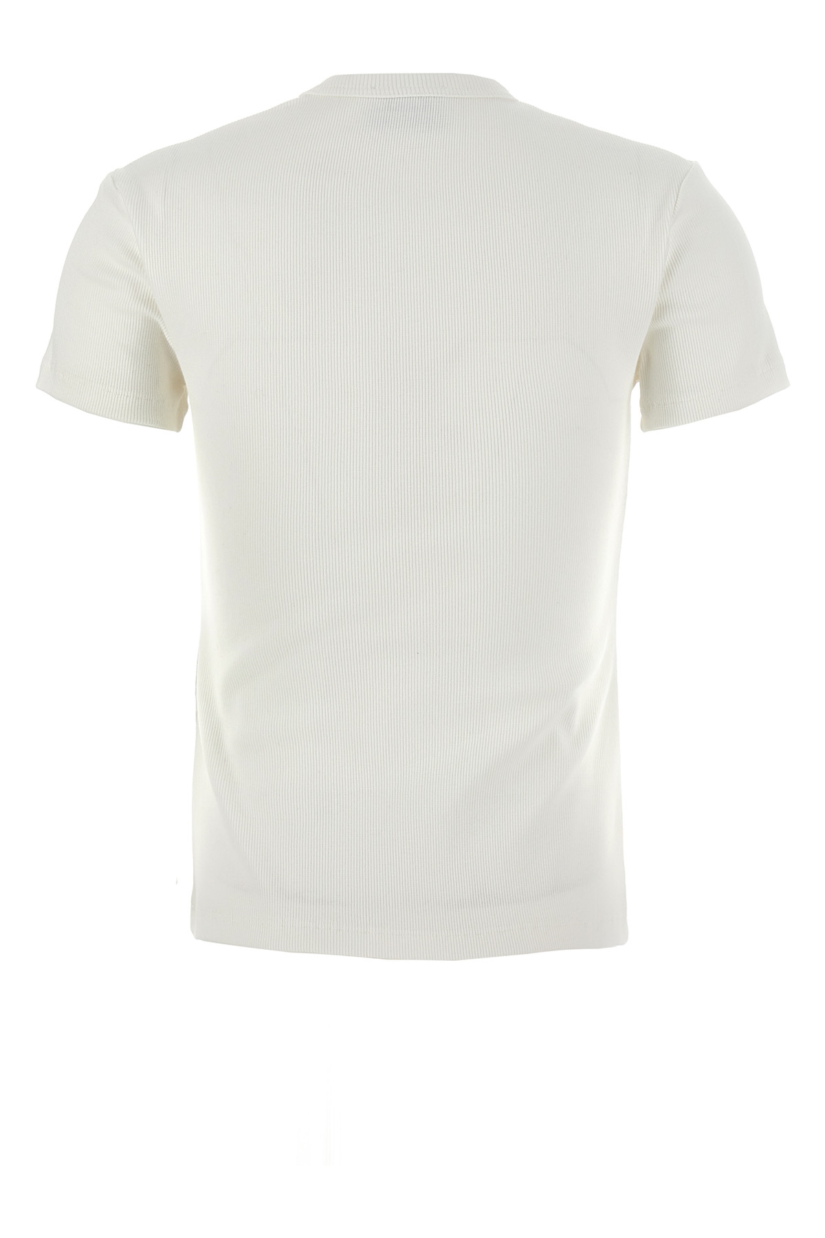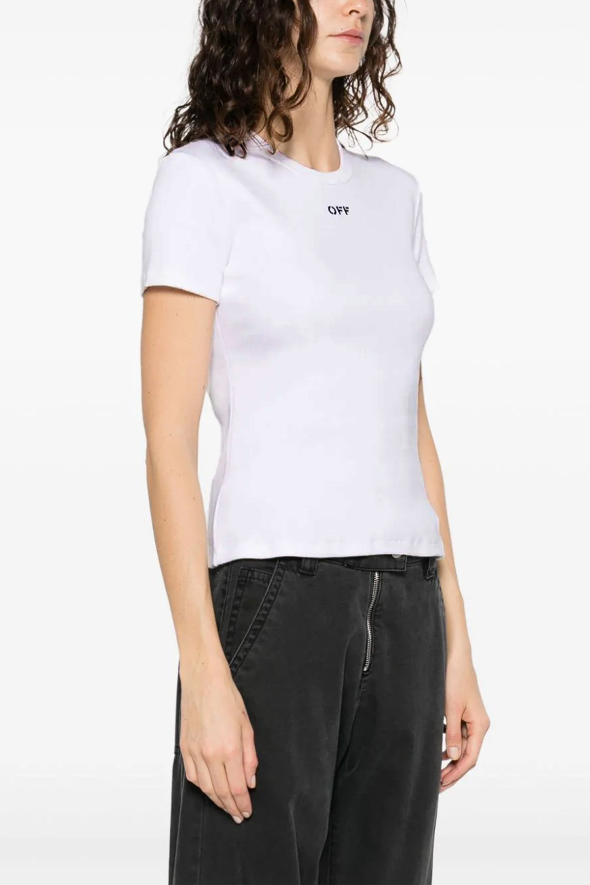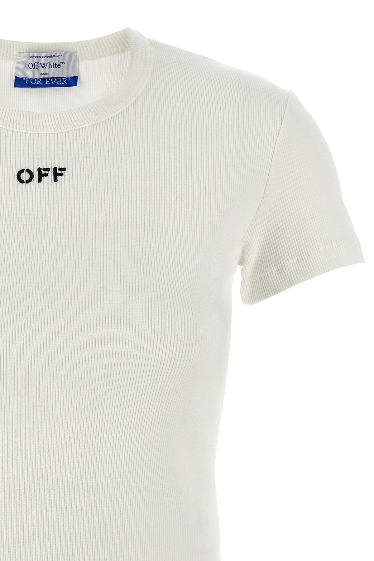 'Off stamp' stretch ribbed cotton T-shirt with contrast logo embroidery, crew neck style.