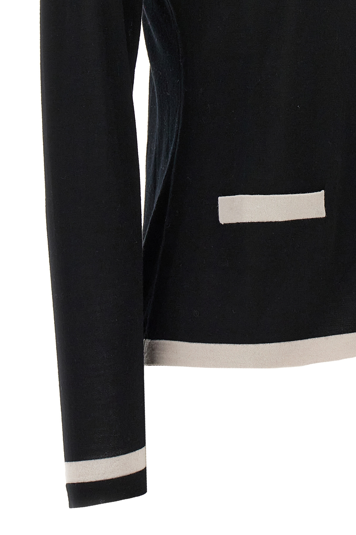 'Kenya' wool cardigan with contrast trimming, pockets, button closure, long sleeves.