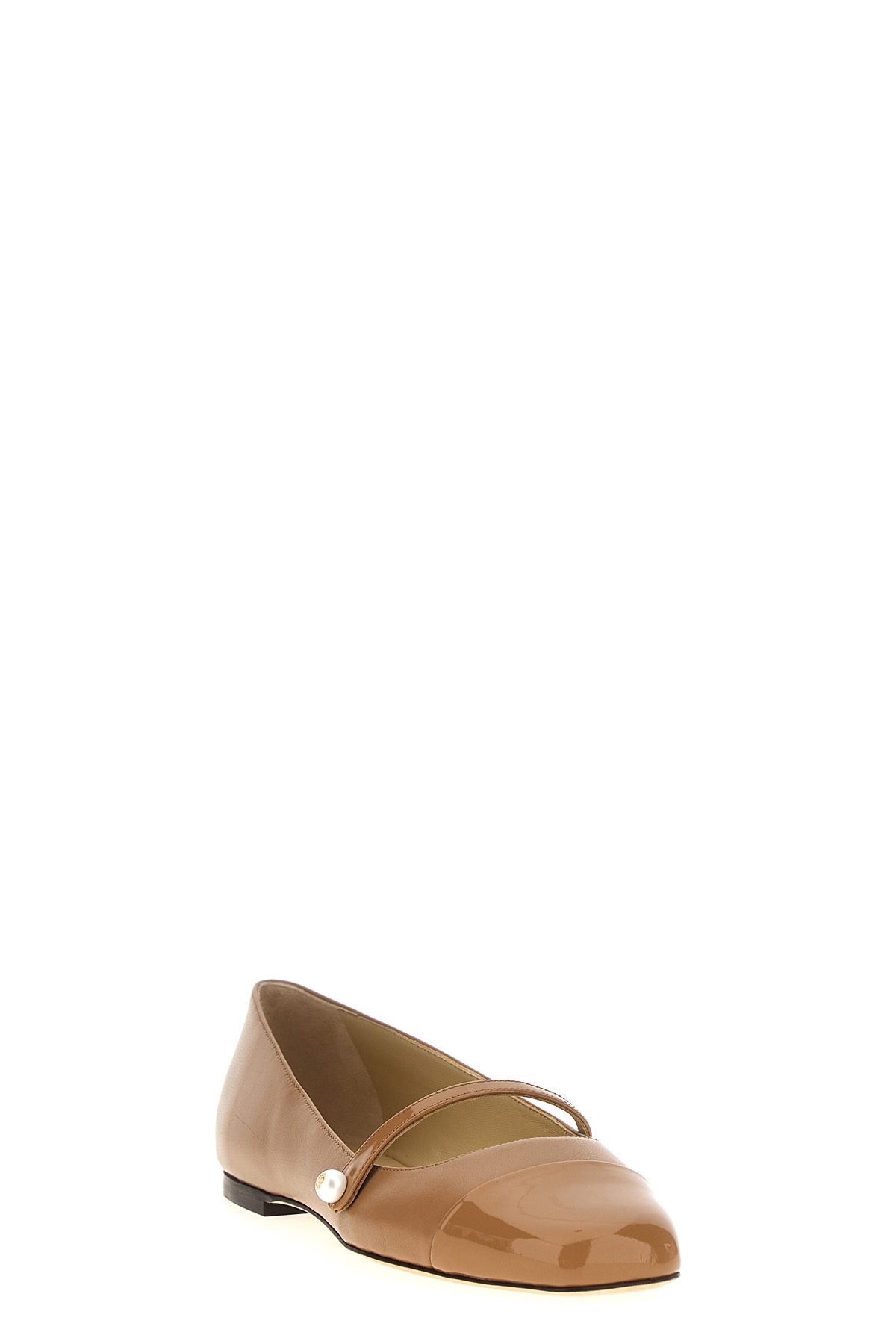 'Elisa' nappa ballet flats with patent leather toe, band decorated with pearl.