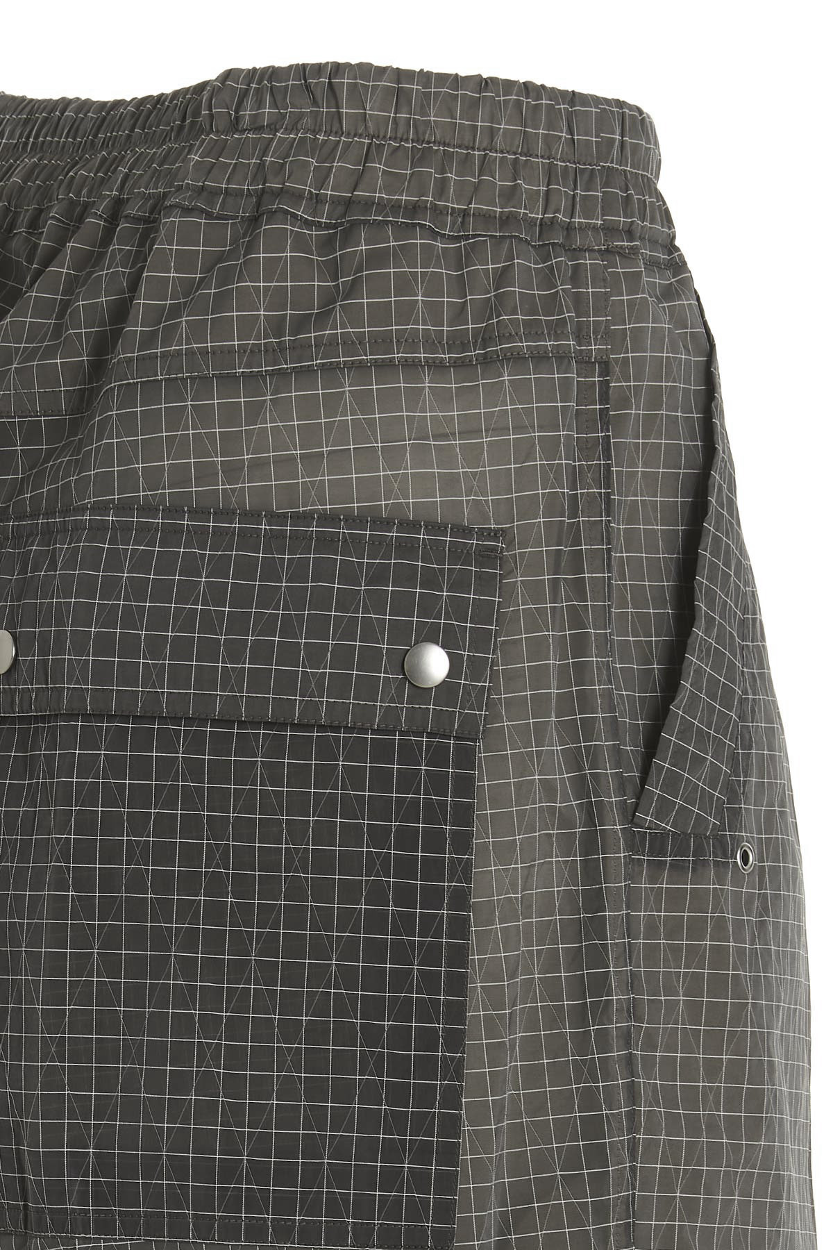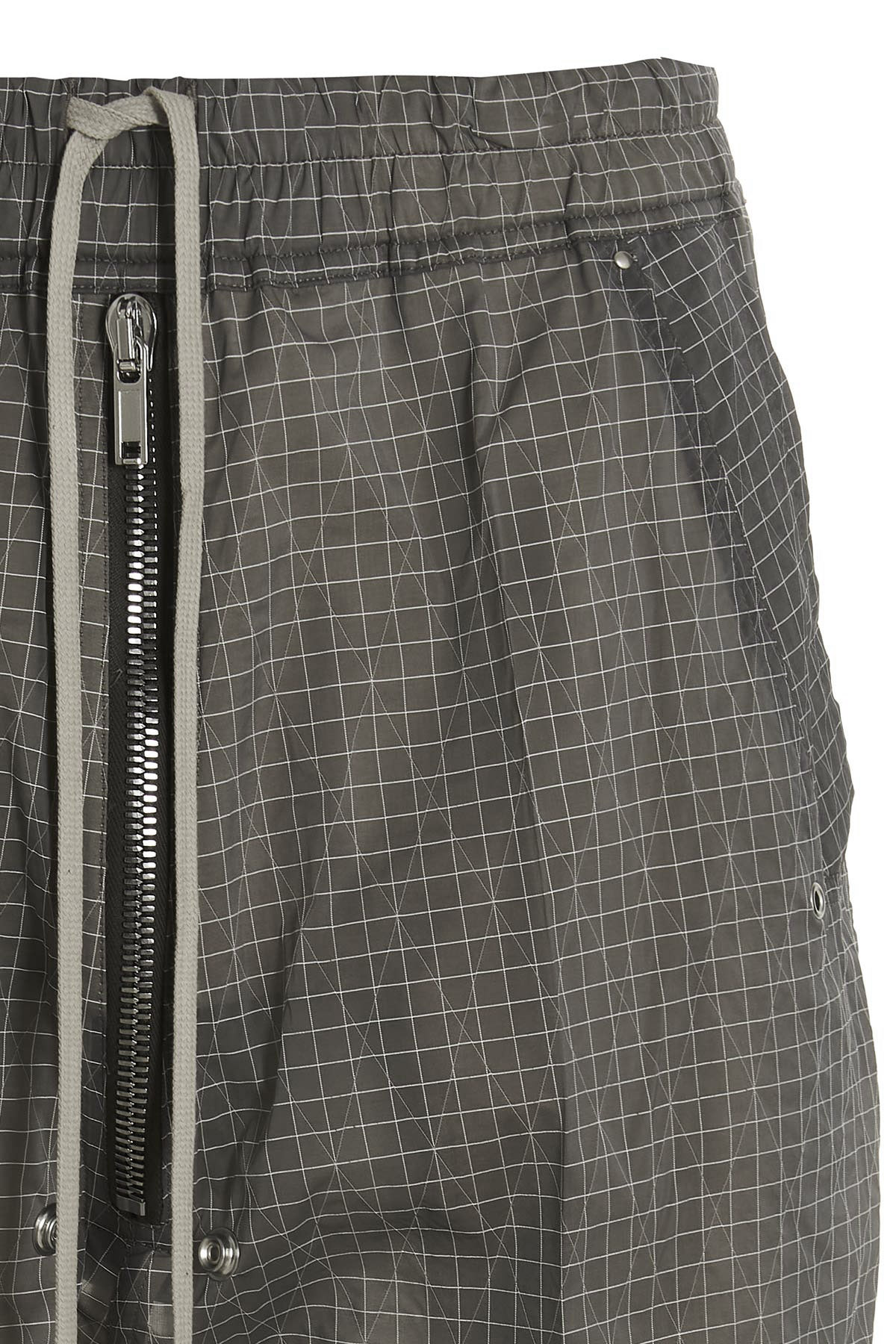 'Rick Pod’ ripstop check fabric bermuda shorts featuring an elastic and drawstring at the waist, a flap with buttons and pockets..