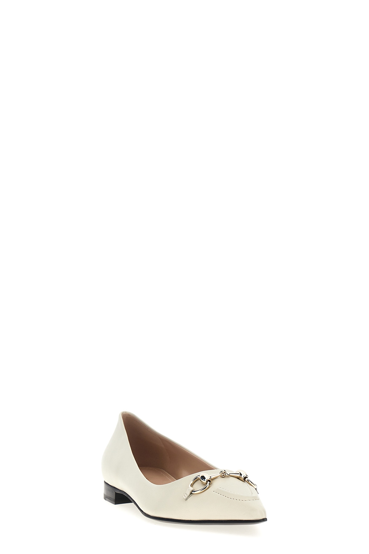 Leather ballet flat, toe model with front 'Morsetto' applique, leather sole.