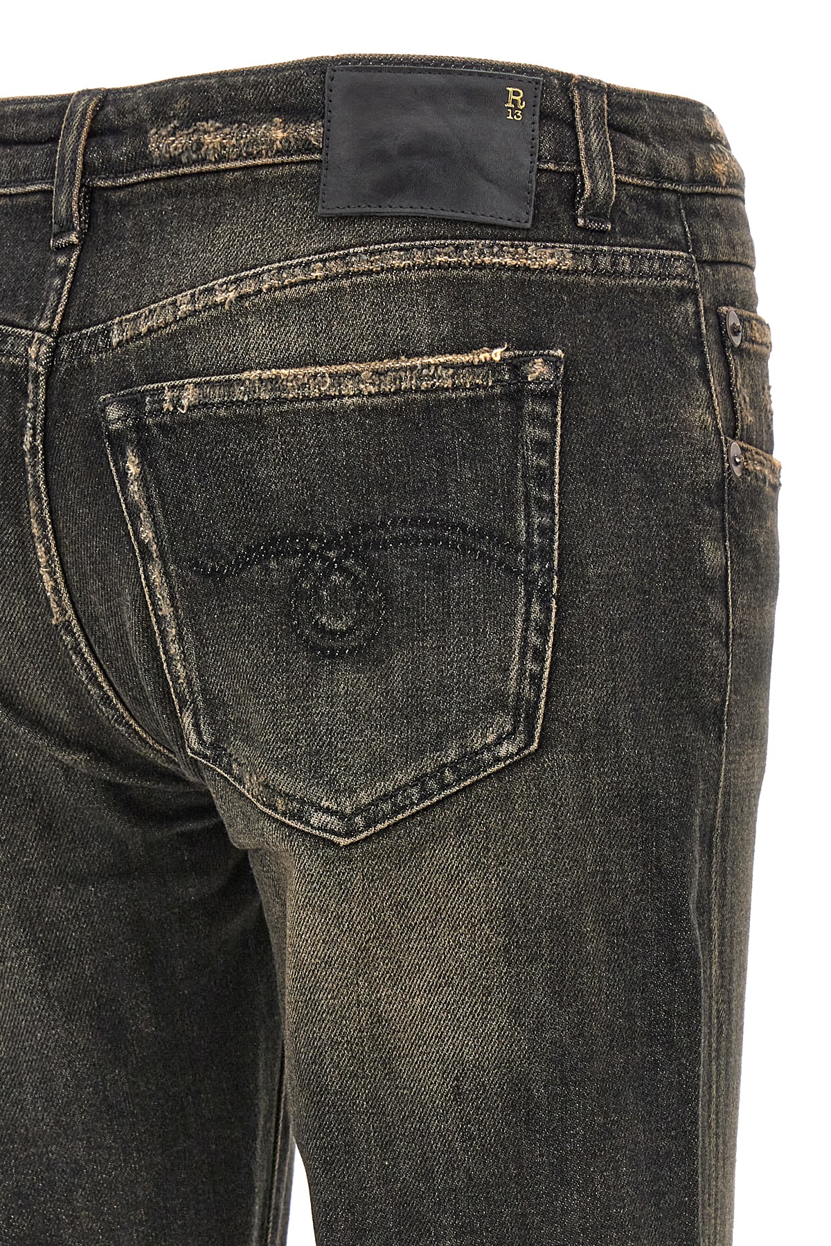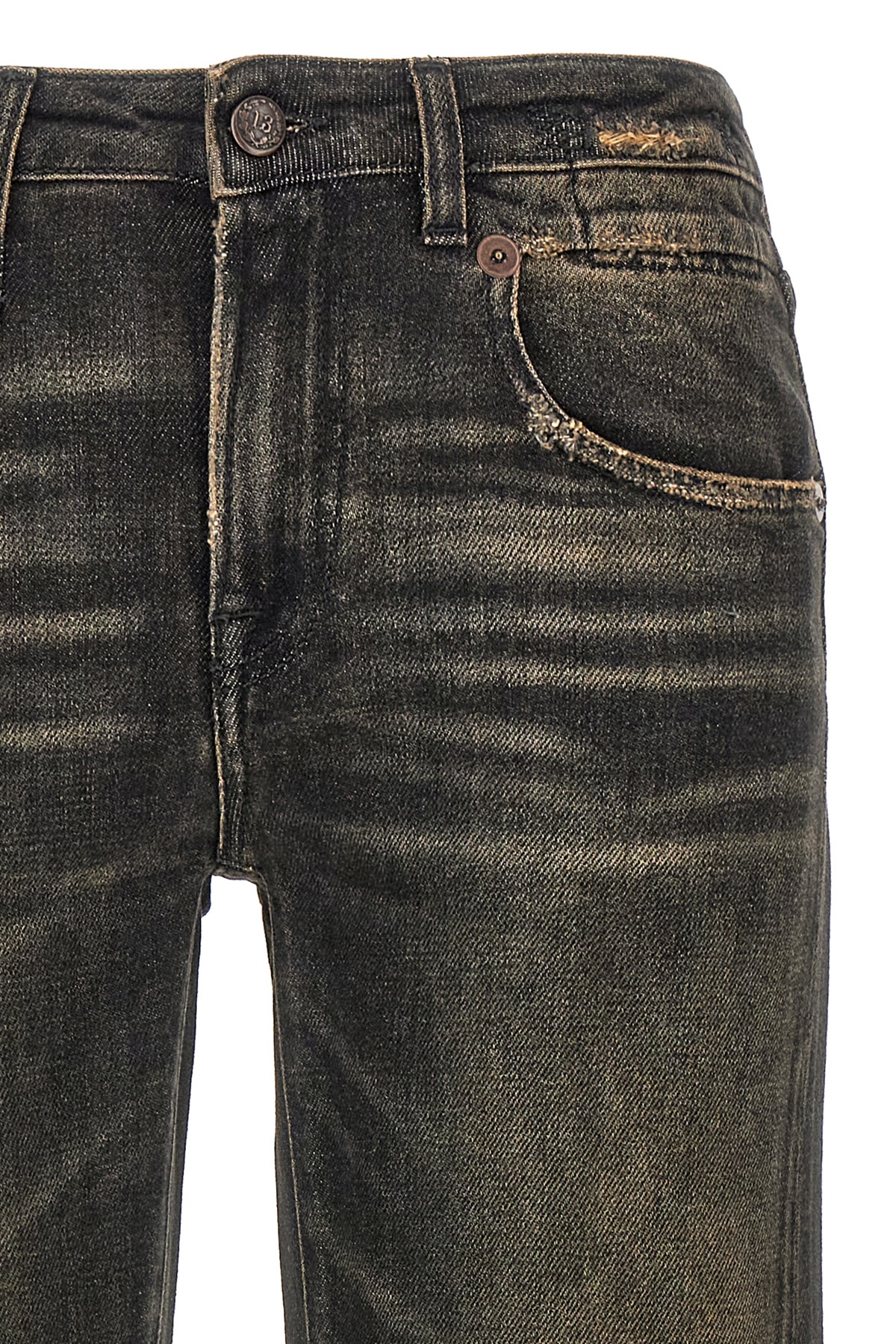'Boy Straight' stretch cotton denim jeans with used-effect details, zip and button closure, five pockets, leather logo tag.