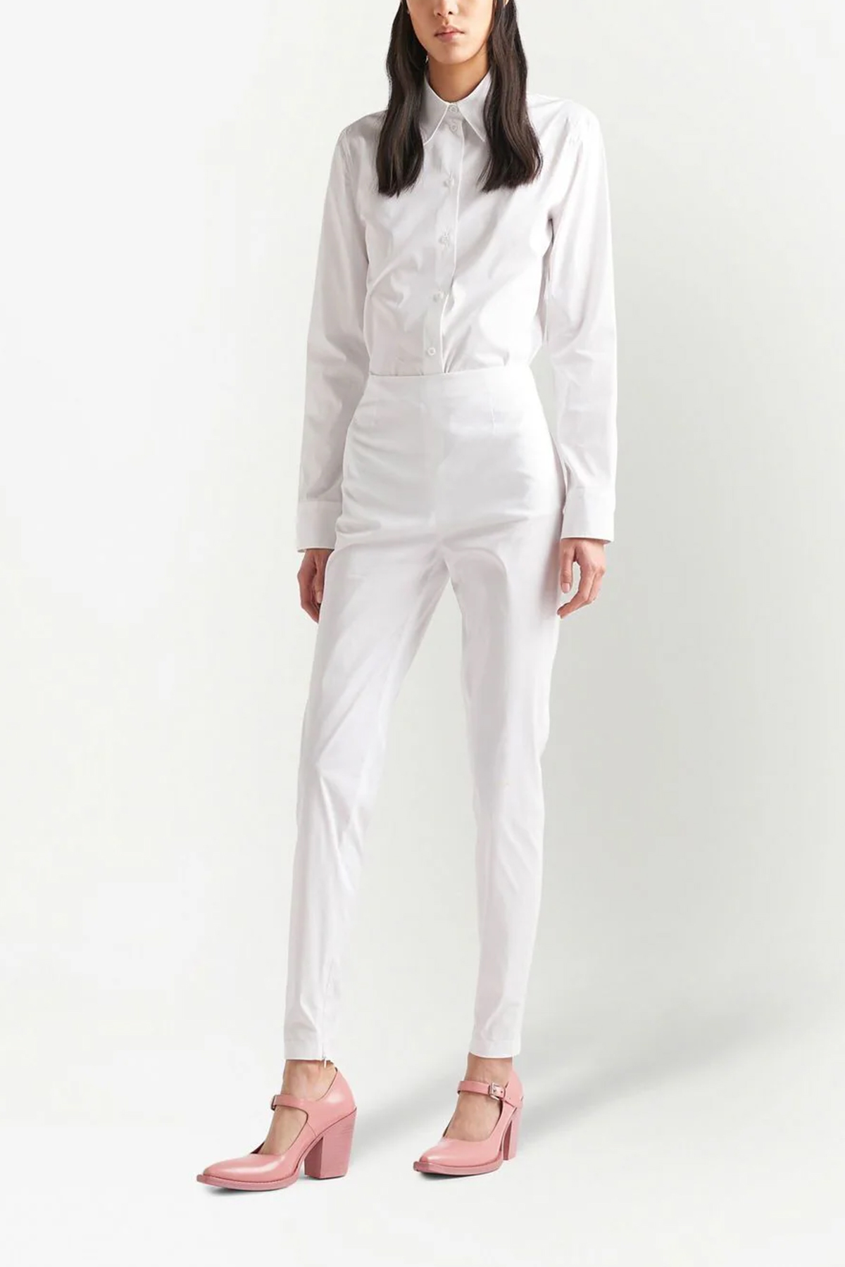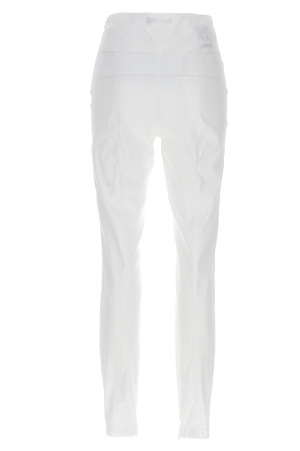 Stretch cotton blend poplin pants with logo at the back, side zip closure and a zip detail on the leg bottoms.
