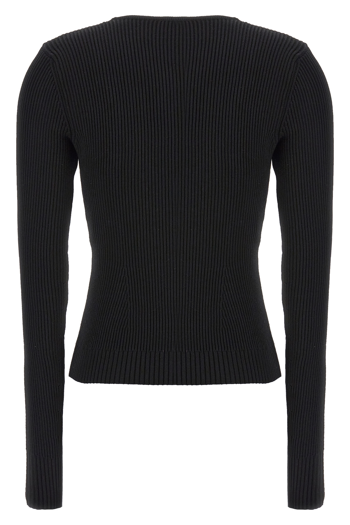 '07' ribbed viscose blend sweater, sculptural detail on the chest, round neckline, long sleeves.