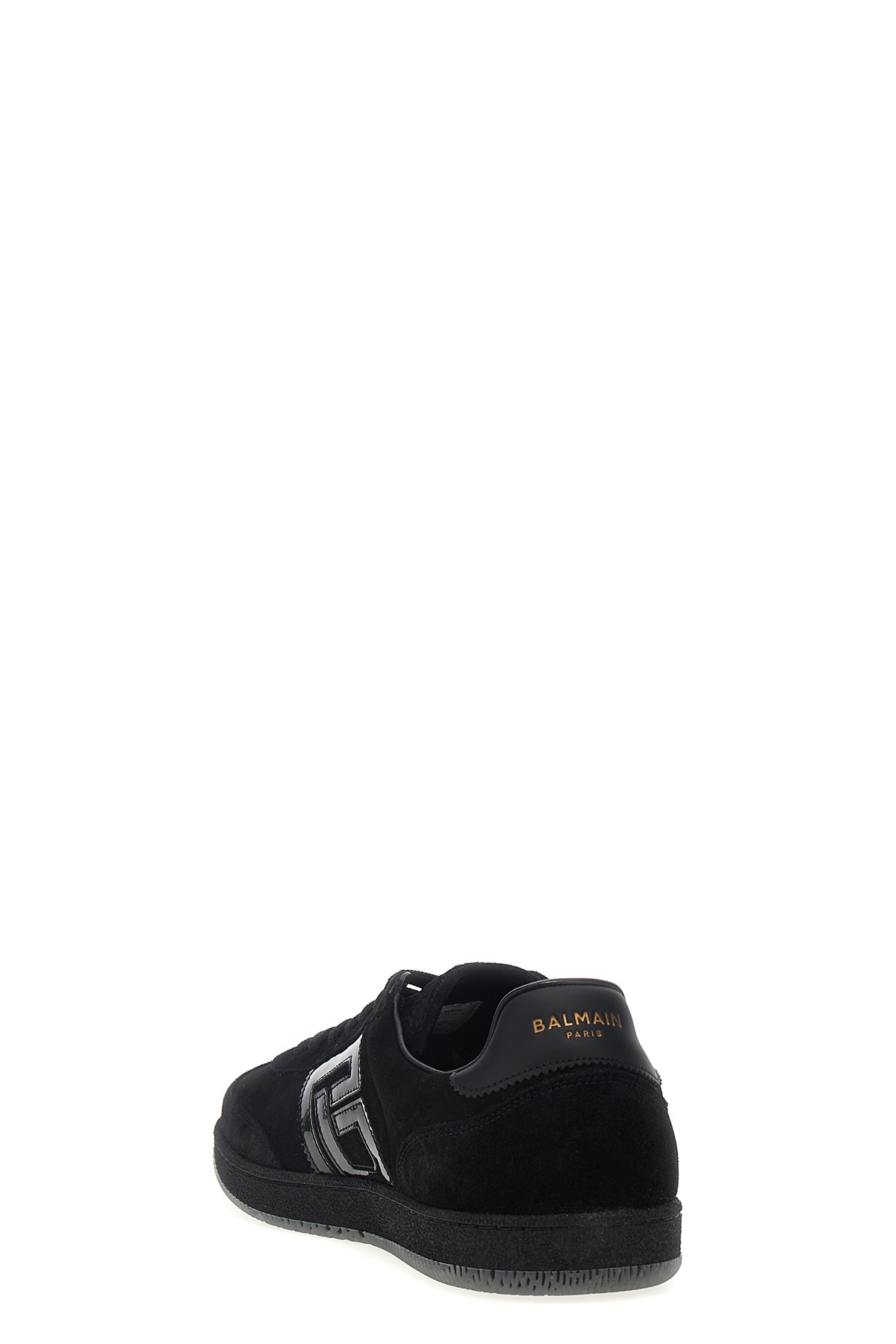 'Balmain Swan' suede sneakers with shiny leather details, lace-up closure, side logo, rubber sole.