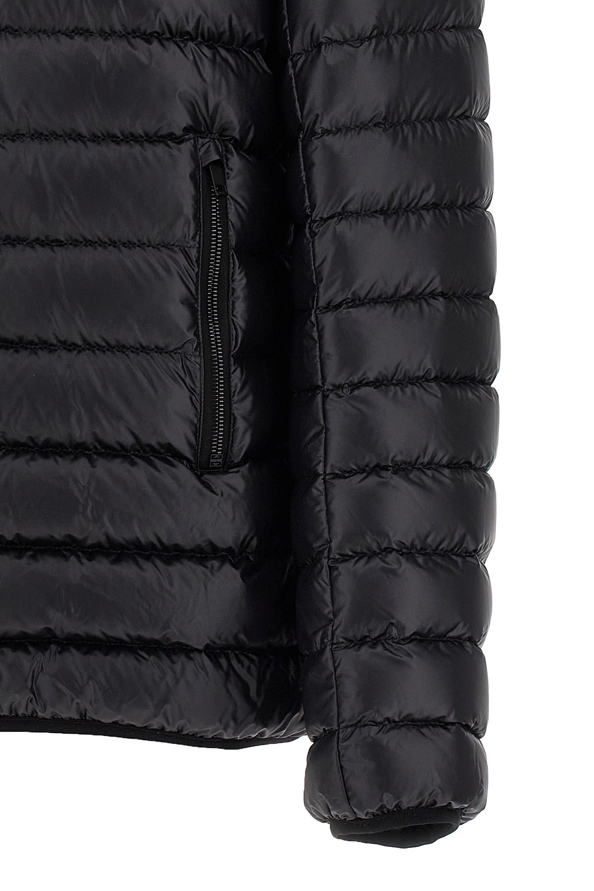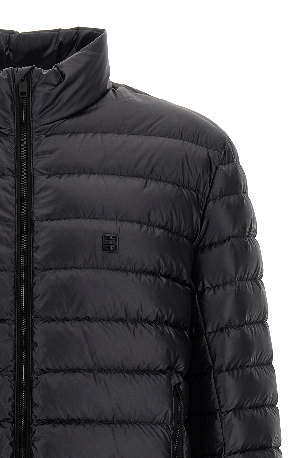 Nylon down jacket padded with duck feathers, front logo plaque, zip closure, pockets, long sleeves.