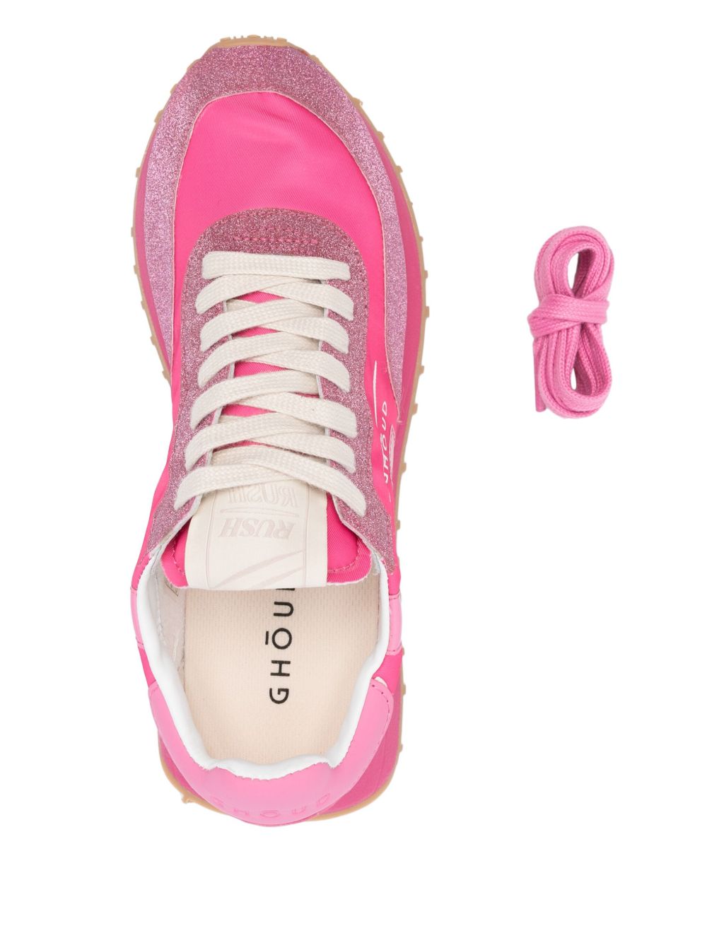 fuchsia pink front lace-up fastening padded ankle rubber outsole glitter detailing